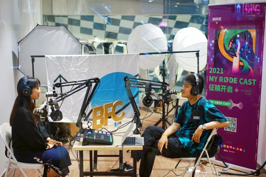 在音乐季期间,BFC 与小宇宙 App 、播客厂牌蝴蝶效应联动,特别策划了一个系列活动, 用“听着播客逛外滩”的方式,并在 BFC 场地内打造一个“快闪播客间”,这种将声音载体植入在活动中,亦是一次非常有意思的“沉浸式”营造,为人们提供与众不同的活动体验。