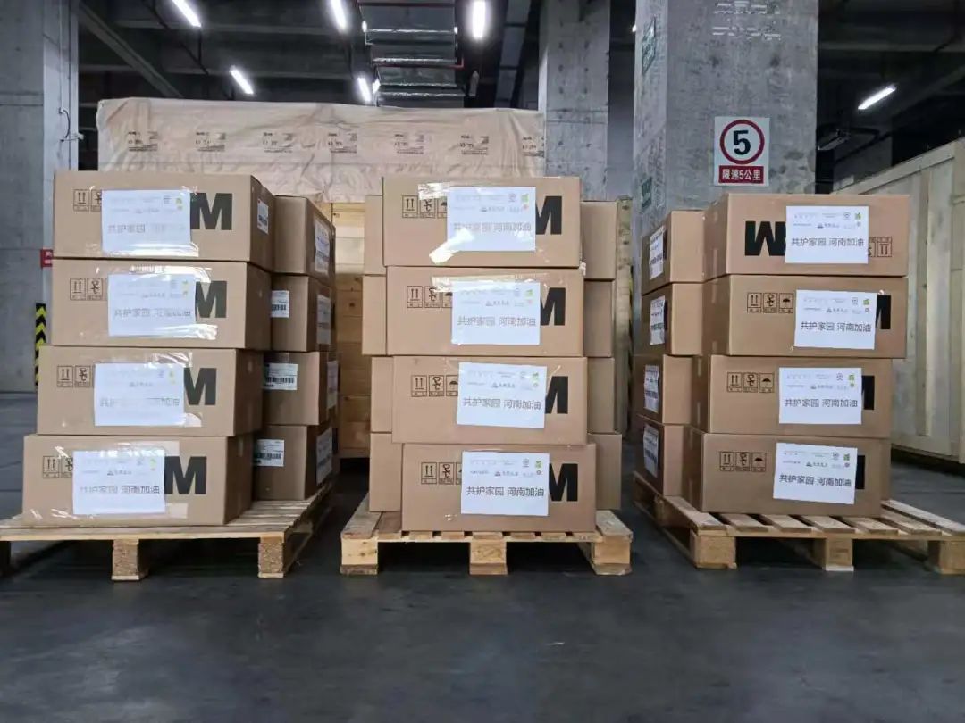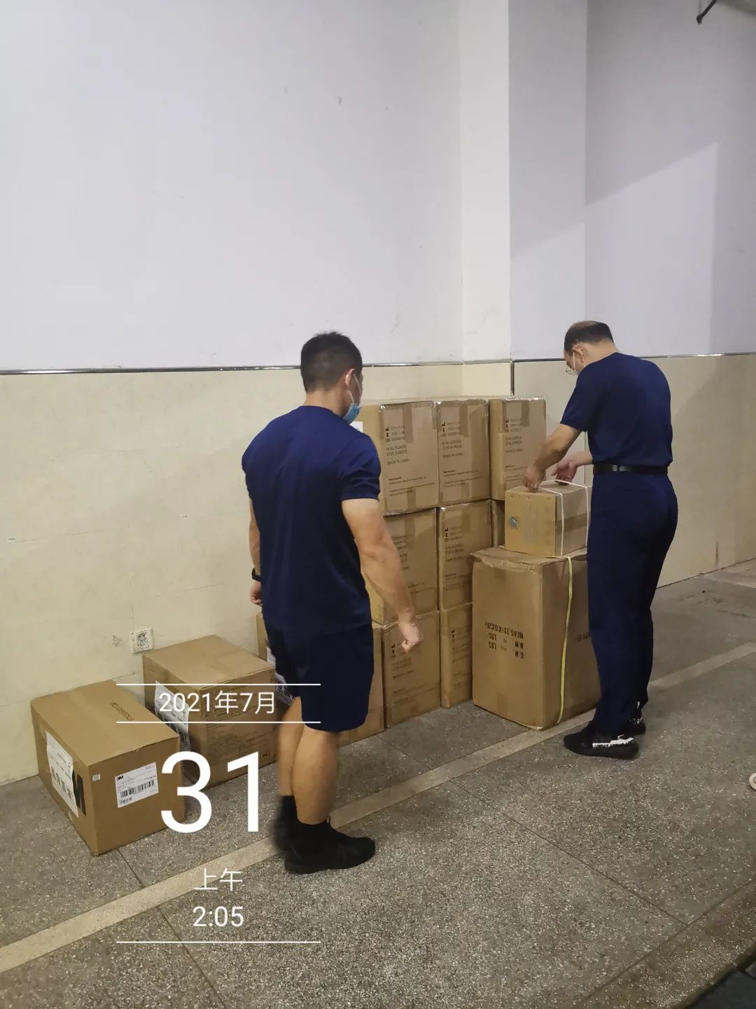 同一时间,郑州洪水刚过,新冠疫情又有新发。指挥部决定,马上在郑州前方建仓,储备防疫防汛物资。第一批10万只3M“复鑫高照”口罩于7月31日下午6点从上海运出,其中1万只将捐予郑州市公安局经济开发区分局的公安民警。