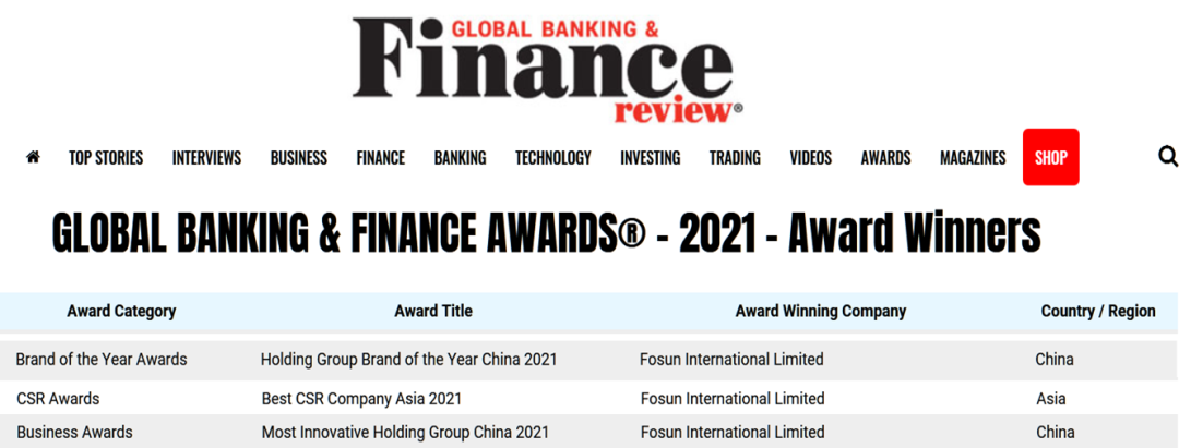 复鑫国际荣获《全球银行与金融评论》三大奖项
