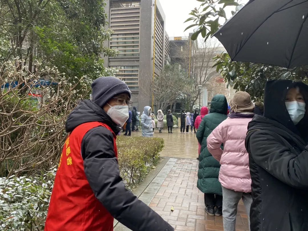 “每次全员检测,都需要从早上八点开始集合,每次工作时间都在8-12小时,时间长的时候会从早上八点一直持续到晚上十一、二点。”窦一宁说,工作时间长再加上天气寒冷是对他们工作最大的考验。但尽管核酸检测点工作量大,存在风险,他也会尽全力参与到社区的志愿者活动中,尽自己的一份绵薄之力。