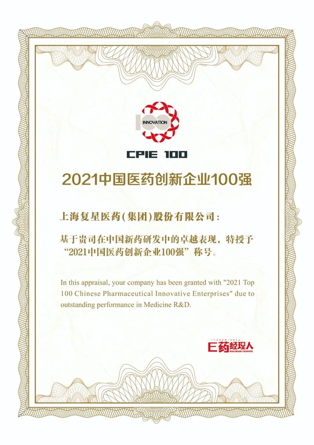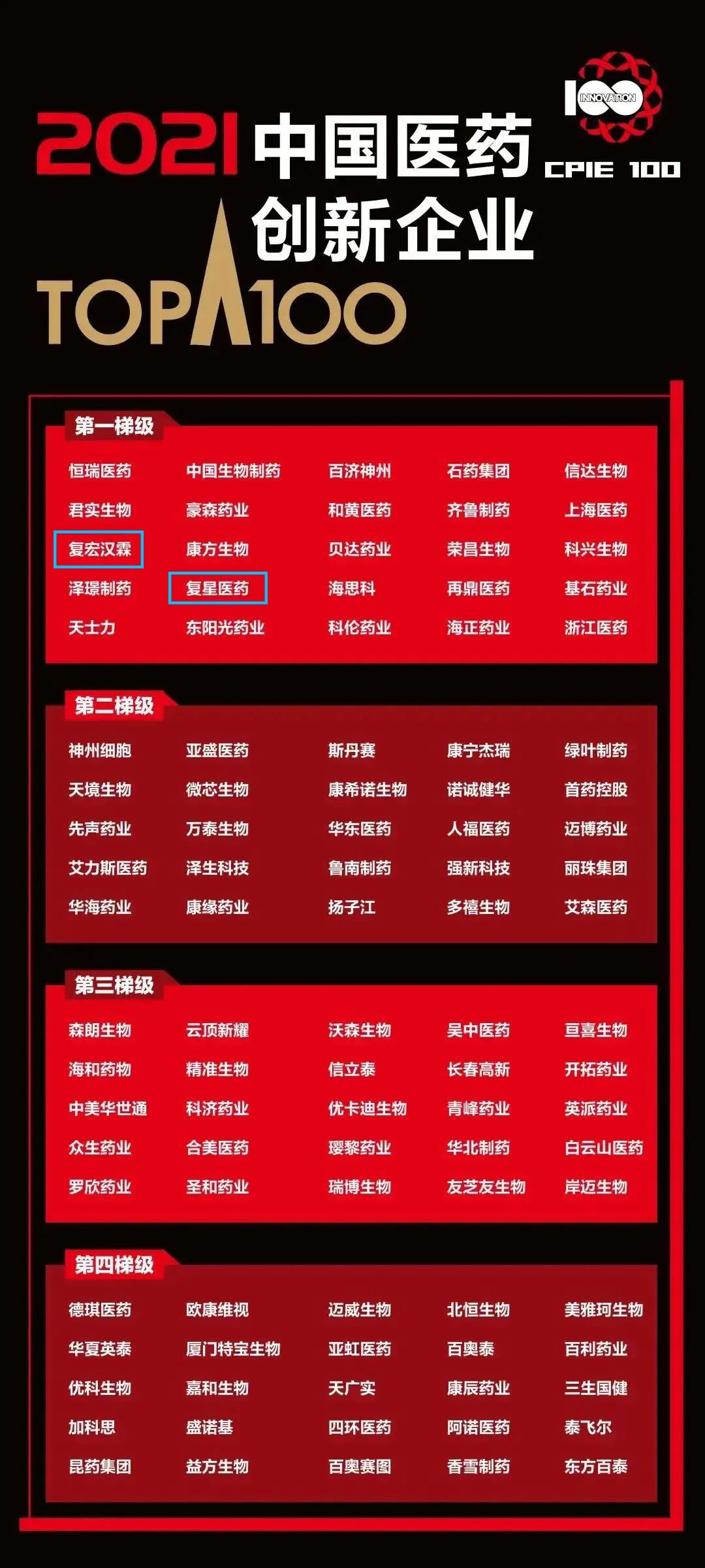 复鑫医药、复宏汉霖荣登“2021中国医药创新企业100强”