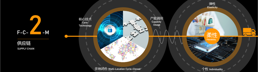 连接C端和M端,靠的是供应链。供应链首先要可控,可控表现在三个方面。一是核心技术,避免遭遇“卡脖子”和断供的危机。二是多地闭环,供应链要在不同的地区市场实现闭合,尤其是在疫情之下,过去全球范围内组合式、接力式的生产关系很难奏效。三是产能调用,系统内部,要能够实现区域和产业之间产能的调用,比如Tom Tailor可以为狼队进行生产。在可控的基础上,星物种所需的供应链,还要进一步柔性化,表现为弹性和个性,订单规模可多可少,同一批次,可以尺寸不一颜色不同款式各样。