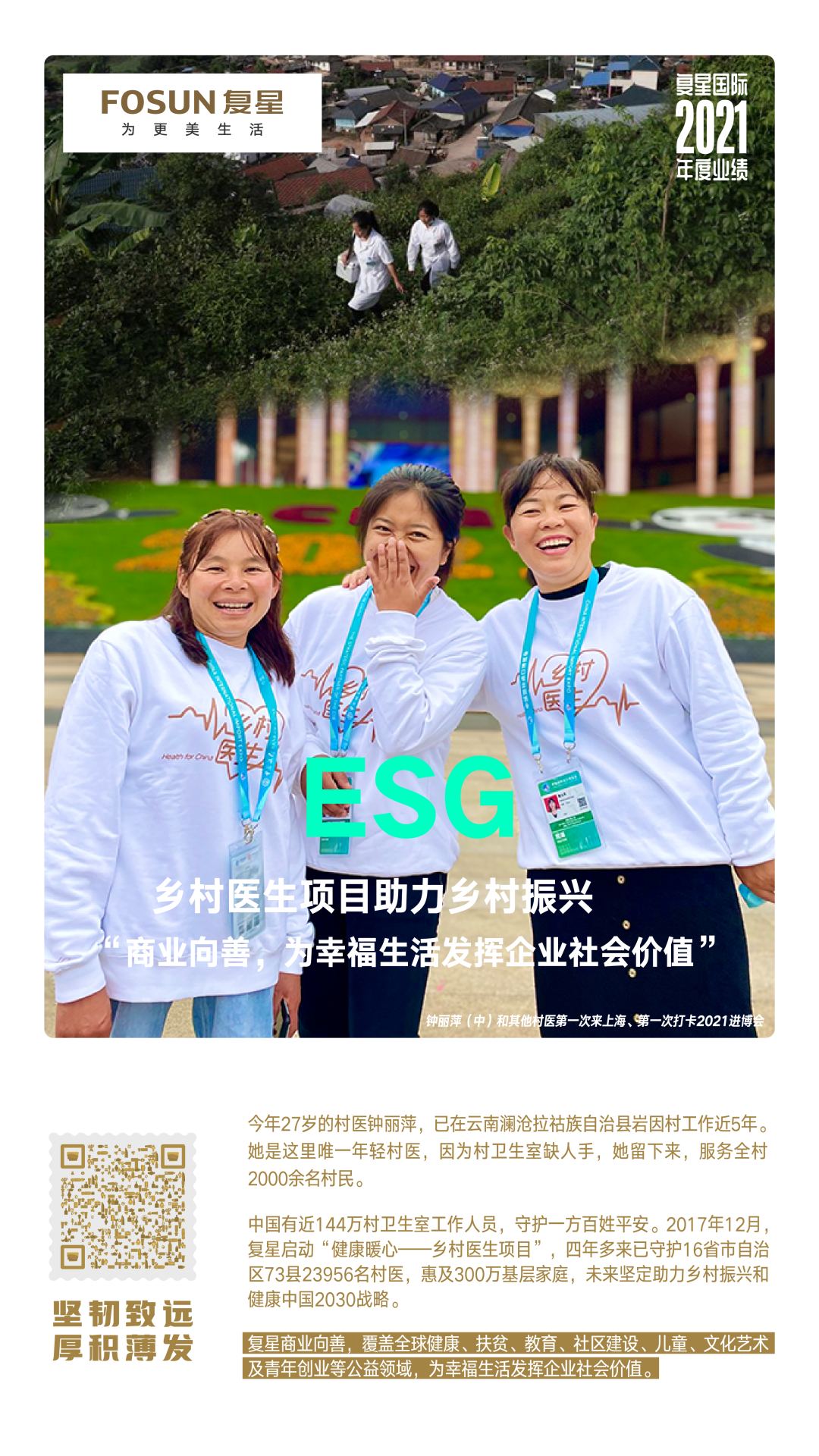 3月22日,上海复鑫医药(集团)股份有限公司(“复鑫医药”或“本集团”,600196.SH;02196.HK)公布2021年度(“报告期”)经营业绩,并同期公布了《2021年度企业社会责任报告》。报告期内,复鑫医药实现营业收入390.05亿元,同比增长28.70%;其中,全球化运营能力进一步提升,中国大陆以外地区和其他国家收入占比达到34.86%;实现归属于上市公司股东净利润47.35亿元,同比增长29.28%;实现归属于上市公司股东的扣除非经常性损益的净利润32.77亿元,同比增长20.60%;经营活动产生的现金流量净额39.49亿元,同比增长53.07%。