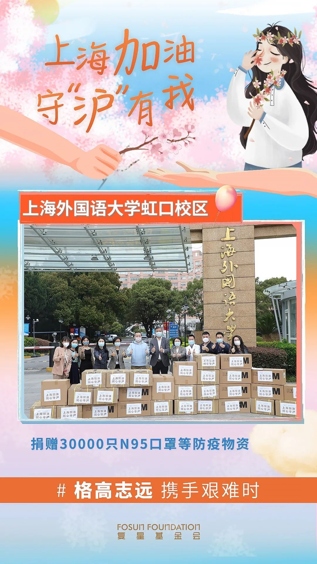 目前,上海全市所有高校都按照校区采用了封闭管理模式,落实全员排查,校内对防疫物资等需求激增。15日晚七点左右,复鑫基金会接到上外党委书记姜锋的电话,了解到学校亟需增援一批抗疫及生活物资。复鑫春季抗疫指挥部迅速响应协调资源,除了安排发往虹口校区的口罩,另有包括消杀用品、燕麦饮等1万余件物资送往松江校区。