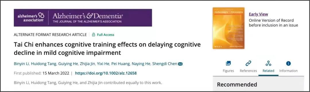 最新研究表明,打太极对治疗帕金森病和预防阿尔茨海默病有显著效果。瑞金医院神经内科陈生弟教授团队近日相继在国际权威医学杂志Translational Neurodegeneration(《转化神经变性病》)和Alzheimer’s & Dementia(《阿尔茨海默症和痴呆》)发表论文,证实坚持太极拳训练可有效改善帕金森病患者运动症状,在延缓轻度认知障碍患者记忆下降和认知衰退方面也有显著效果。