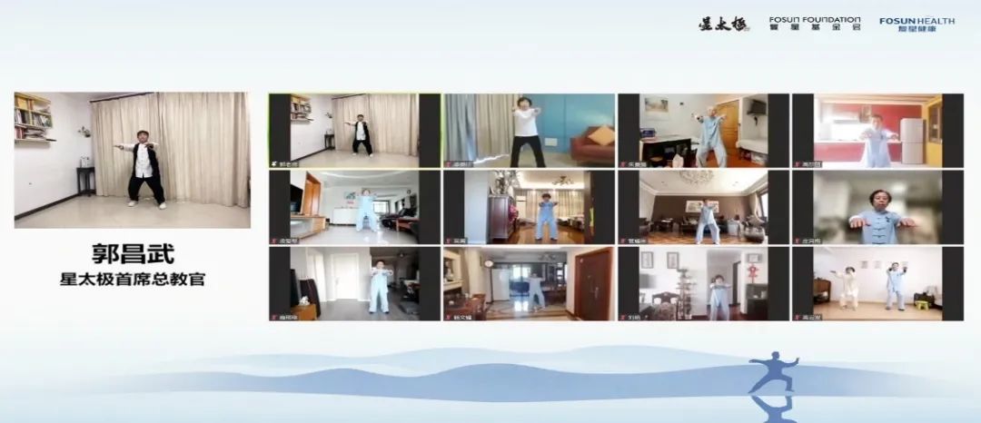 9日的直播中,十余位来自复鑫基金会“太极抗帕”公益班的学员和总教官郭昌武,一起在云端习练起星太极的三势太极拳。这不是“帕友”们的第一次云上练太极,自2020年新冠肺炎疫情发生以来,星太极持续开办线上太极直播公益课,公益班的学员保持着每天有规律的跟练打卡。