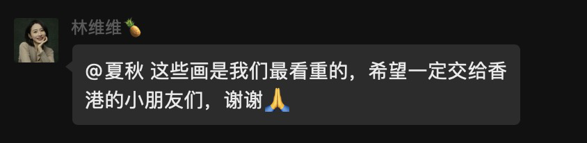 刘夏秋说,这次驰援的物资、孩子们的画将和复鑫基金会的第三批物资于下周包机送往香港。林维维表示:“期待疫情散去、春暖花开时,两地青少年能够互相走访交流,分享共同守护家园的故事。”