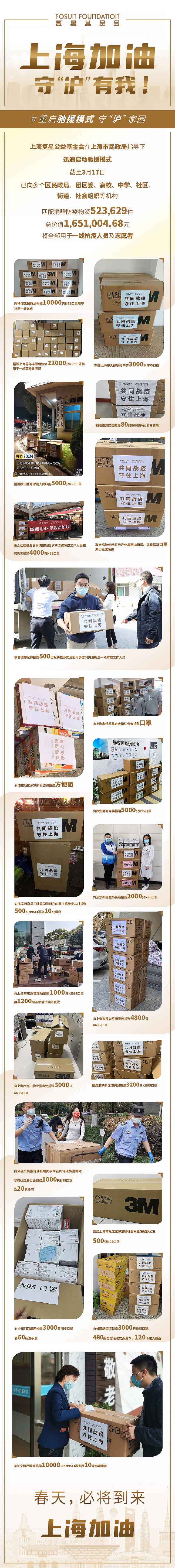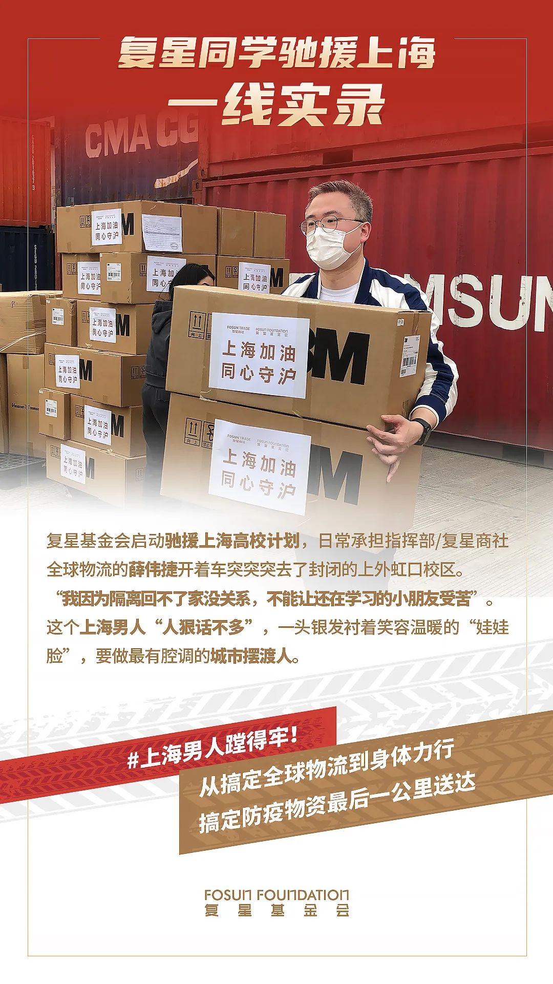 在高架上,员工志愿者爱心车队仍在飞驰;在指挥部,物资对接需求表还在不断刷新。复鑫基金会理事长李海峰是复鑫春季抗疫总指挥,昨天还参与了001车队的驰援任务。连日来,在39层办公平面的同事经常能听到他的叮嘱:“我们复鑫人,再多做一点,再为这个城市多出一份力。”