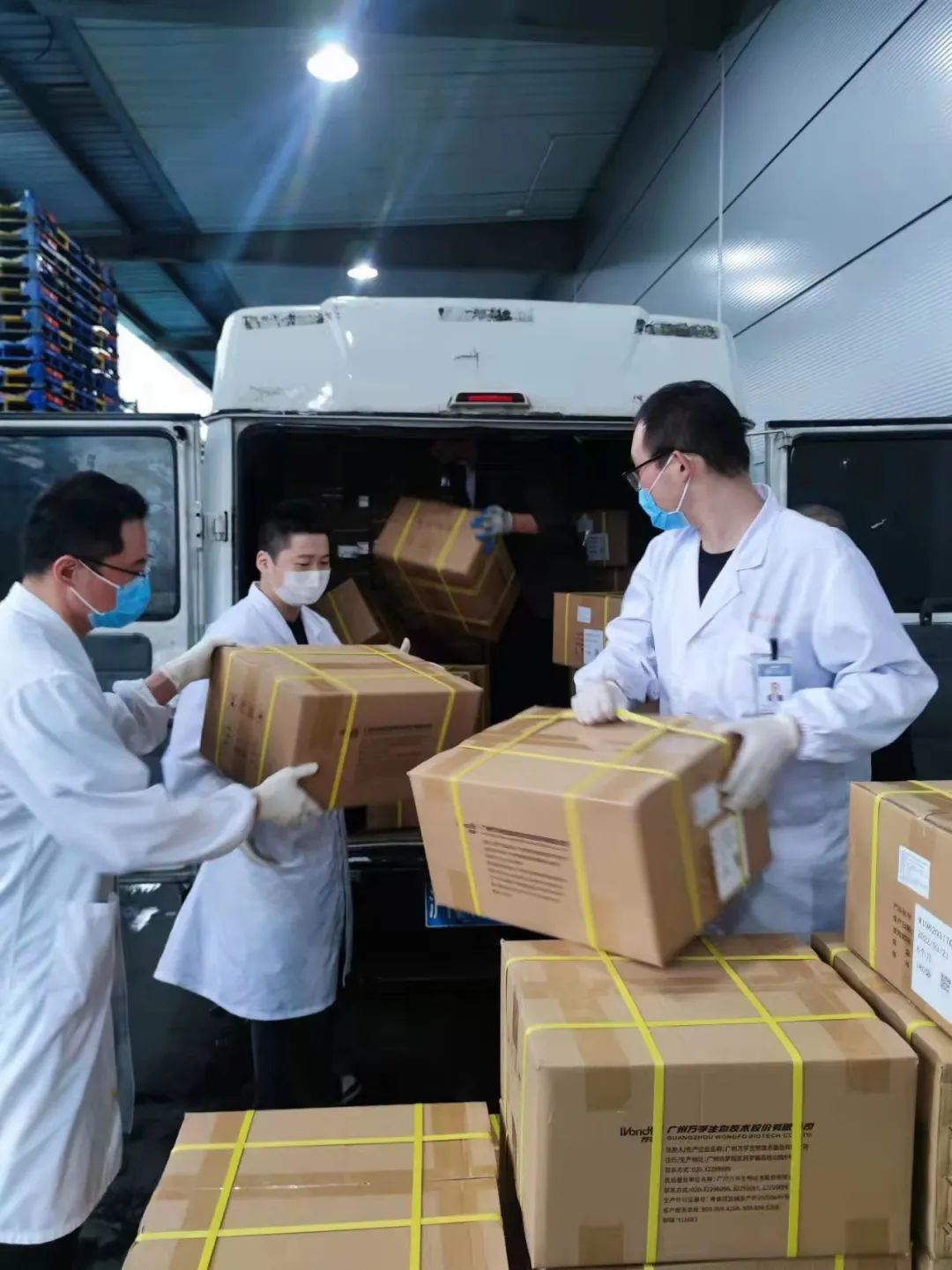 经过紧张的前期筹备,4月13日下午,首批捐赠物资发出,交付至复旦大学附属中山医院、复旦大学附属妇产科医院、安医大一附院援沪医疗队。截至4月19日,大部分防疫物资捐赠完毕,第二批生活物资也在紧急驰援中。