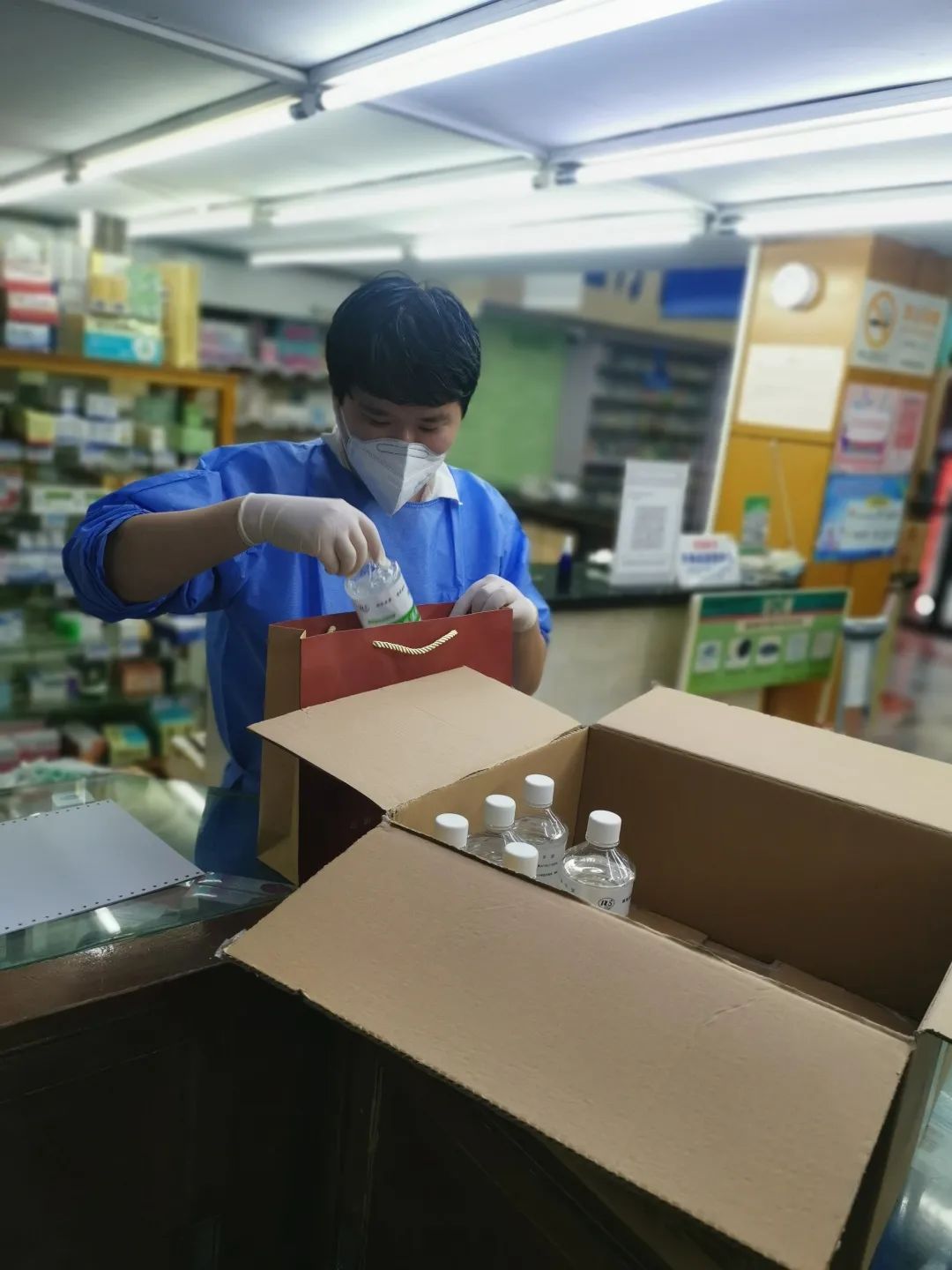 ▲ 童涵春堂部分门店复工后,店员正在根据附近居民需求配药