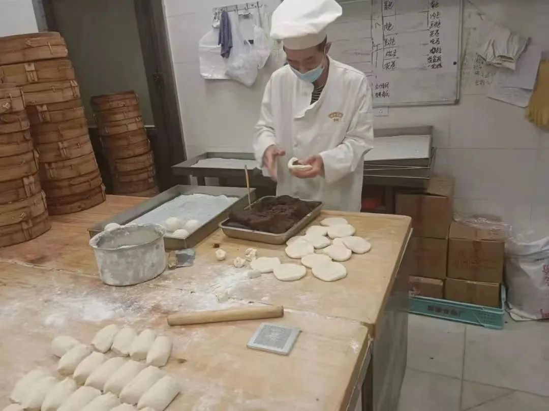 ▲ 德兴菜馆昌里路店复工,店员正在店内制作点心和菜品,满足附近居民团购需求