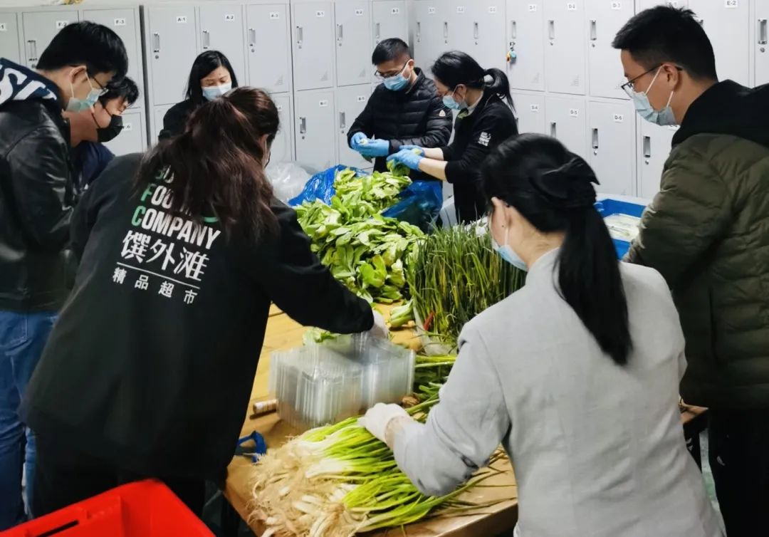 ▲ BFC团队在馔外滩超市分拣社区保供菜品