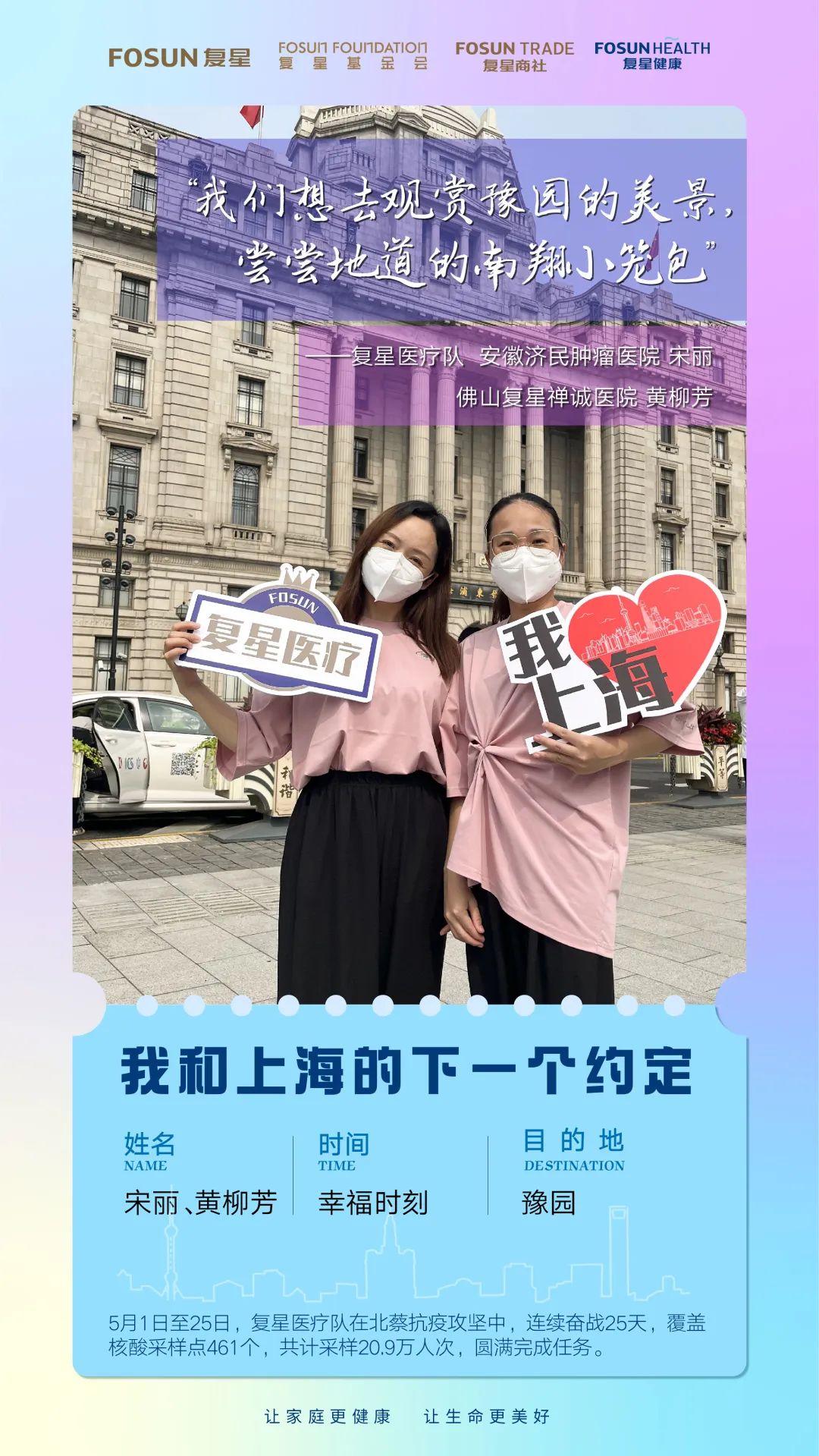 5月28日,圆满完成任务的姑娘们将陆续踏上返程。“等到上海恢复往日的精彩时,一定还会再来。” 看着眼前的外滩,易嘉丽和姐妹们许下和上海的下一次约定,去复鑫艺术中心看展览、去迪士尼玩、逛逛热闹的豫园和外滩枫径、尝尝南翔小笼包和城隍庙梨膏糖……