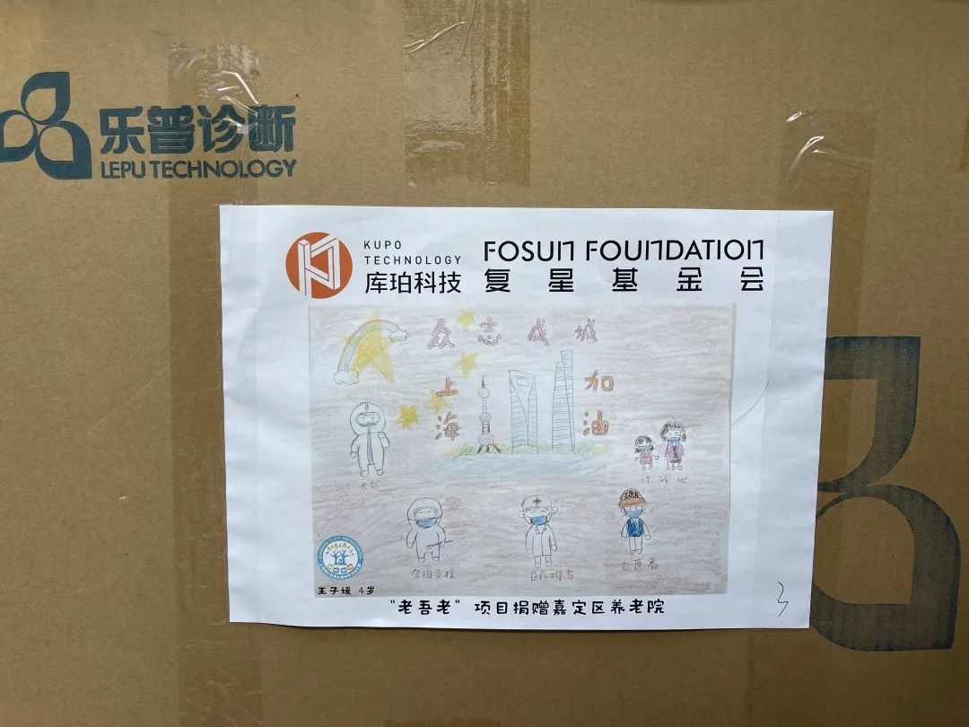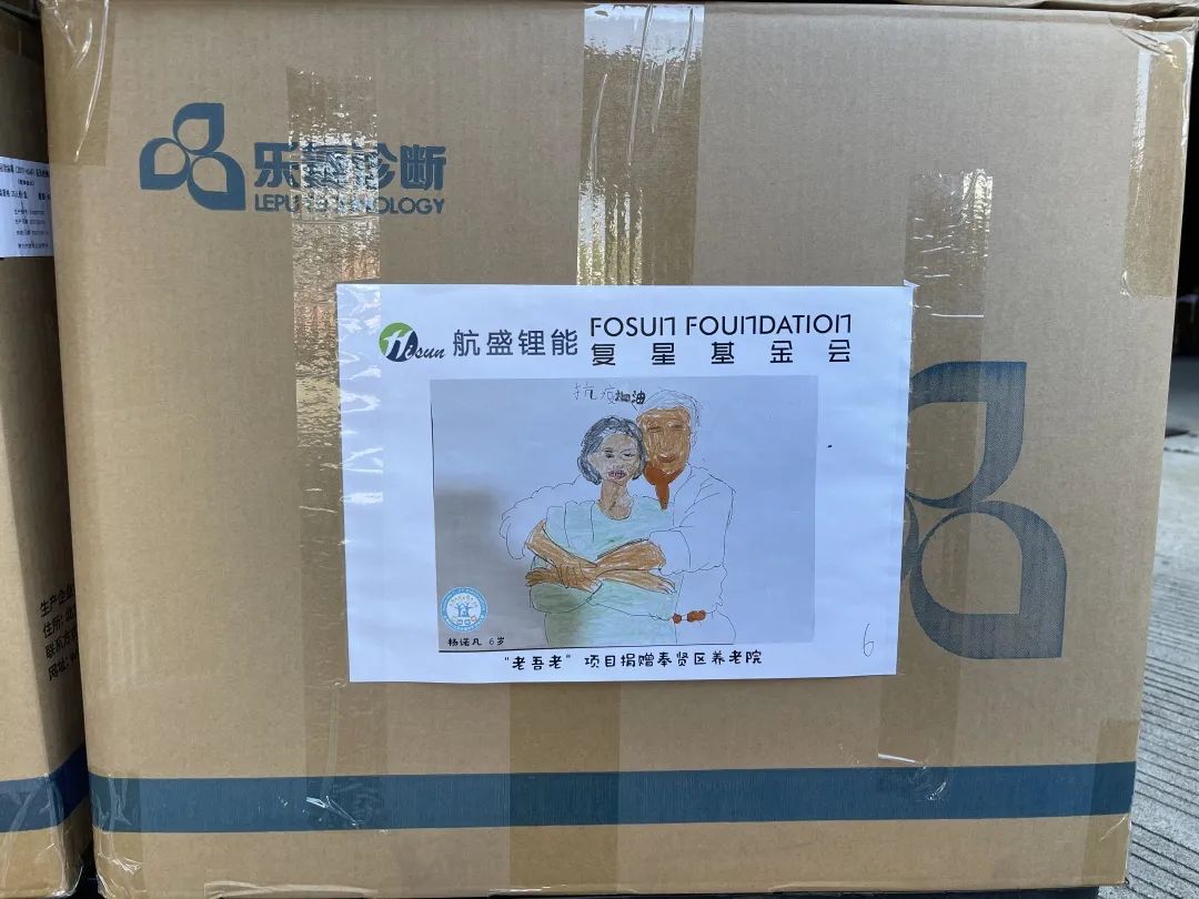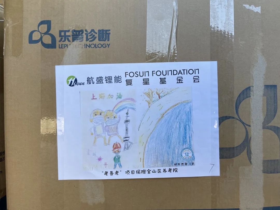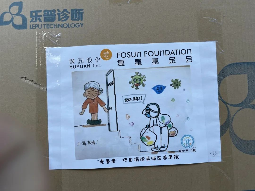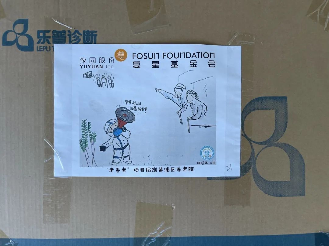 5月4日,上海复鑫公益基金会(简称“复鑫基金会”)联合库珀科技、航盛锂能、中国飞鹤、叶建宇、豫园股份向28家养老院捐赠56箱25200件防疫物资。5月6日,复鑫基金会联合蒋一侨、金徽酒向5家养老院捐赠25箱11250件防疫物资。5月7日,复鑫基金会将联合金徽酒、南钢、北京联想公益基金会向17家养老院捐赠43箱19350件防疫物资。