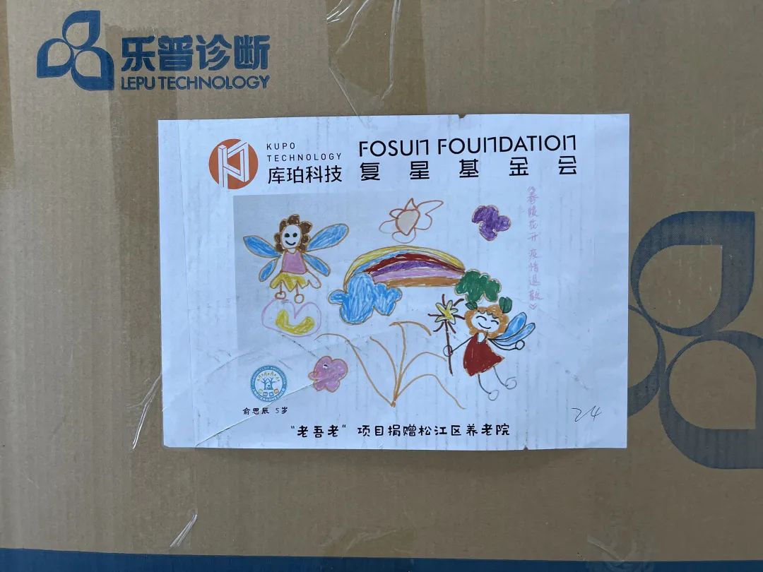 33幅童言童画 贴在物资箱上送给了爷爷奶奶们