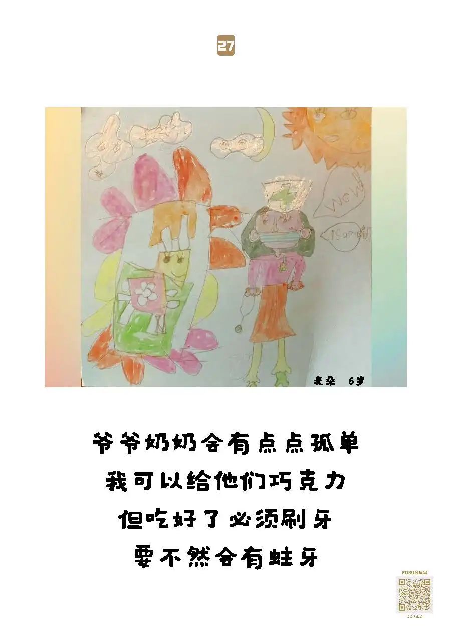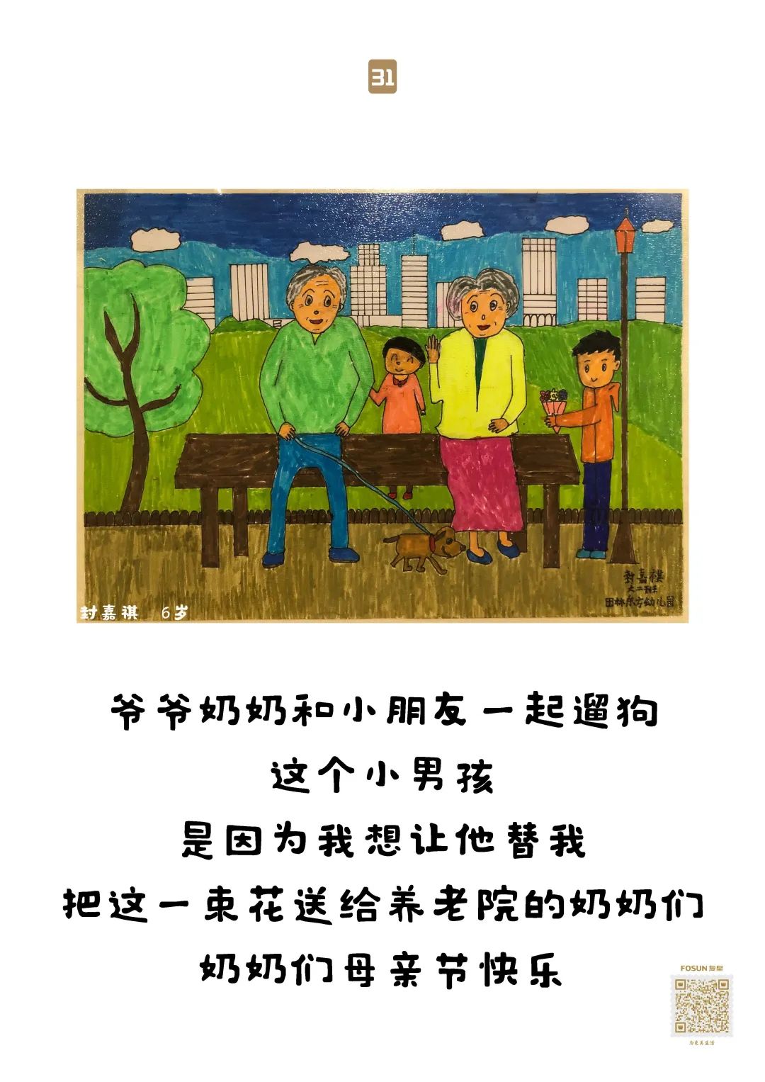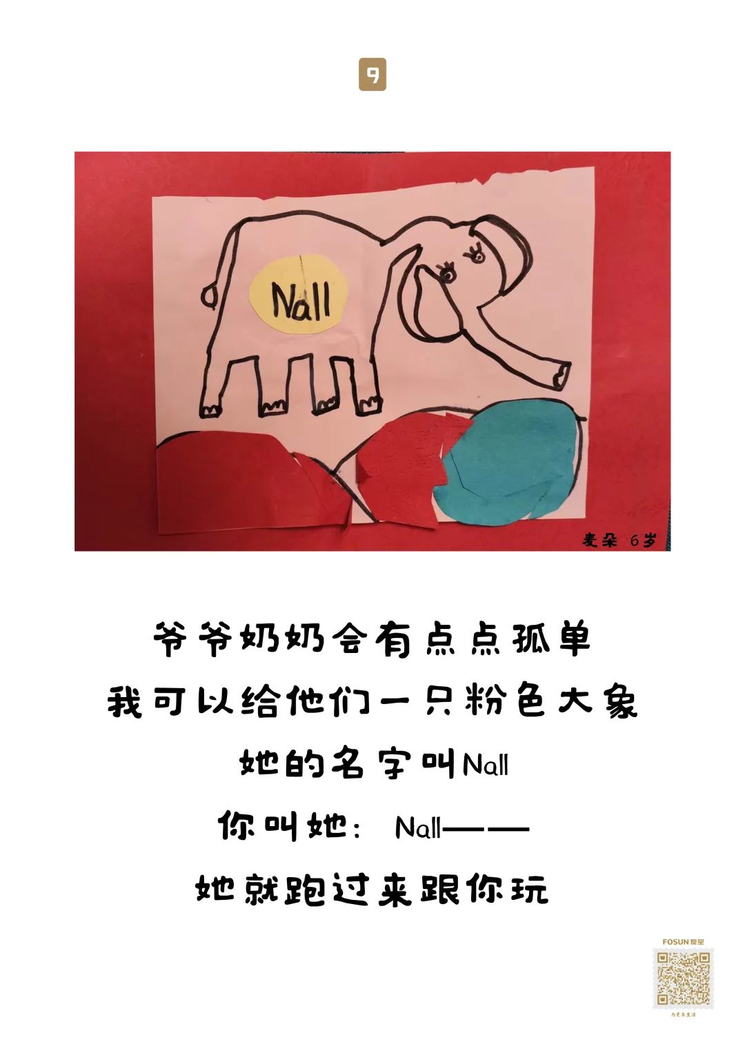 一直做助老公益活动的田林东方幼儿园,看到复鑫基金会“老吾老”项目后,4月20-27日,小到大班175名4-6岁孩子原创“给爷爷奶奶的画”。