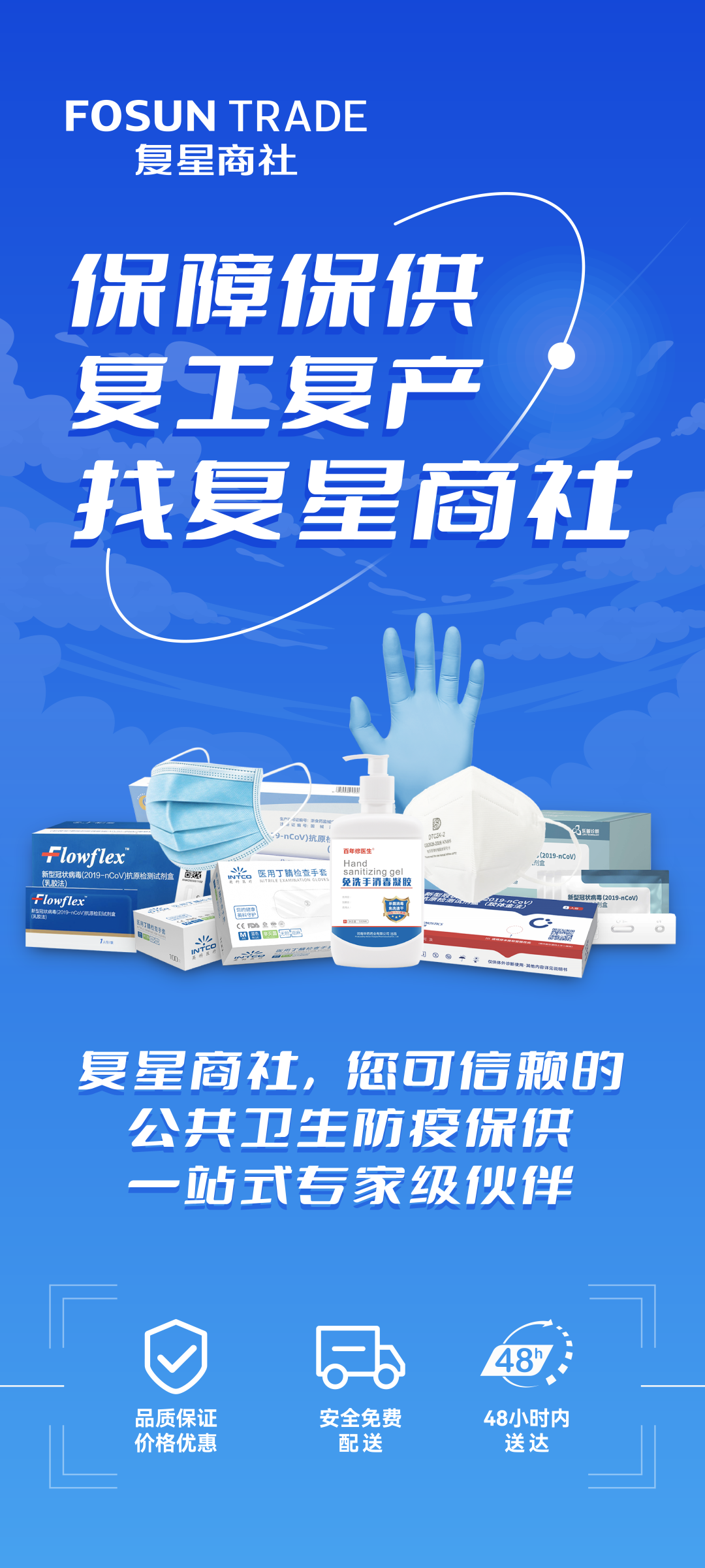 ▲复鑫商社提供复工复产复市防疫物资“一站式”保供方案。