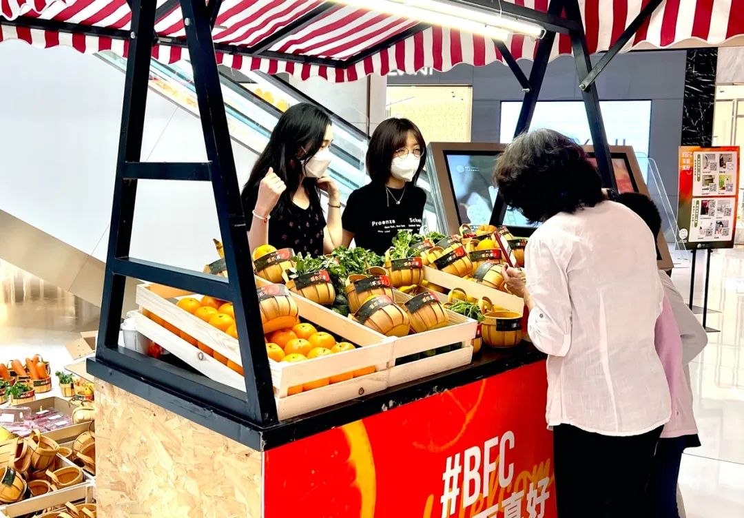 BFC商场向顾客送出暖心见面礼,丰富的蔬果篮蕴含美好寓意 。