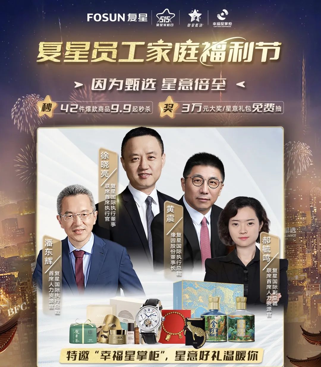 5月15日,围绕“因为有你,星意倍至”主题,第四届515复鑫家庭日如期举行。当天的直播活动中,作为复鑫生态置顶项目之一的“幸福星掌柜”正式亮相,复鑫国际联席首席执行官徐晓亮,复鑫国际执行总裁、豫园股份董事长黄震,复鑫国际执行总裁、首席人力资源官潘东辉,复鑫国际副总裁、联席首席人力资源官郝毓鸣,作为特邀“幸福星掌柜”启动该项目,并通过锻造过硬的销售、运营人才和组织体系,让复鑫的好产品、好服务更好地响应并满足全球家庭客户对爱与幸福的期许。