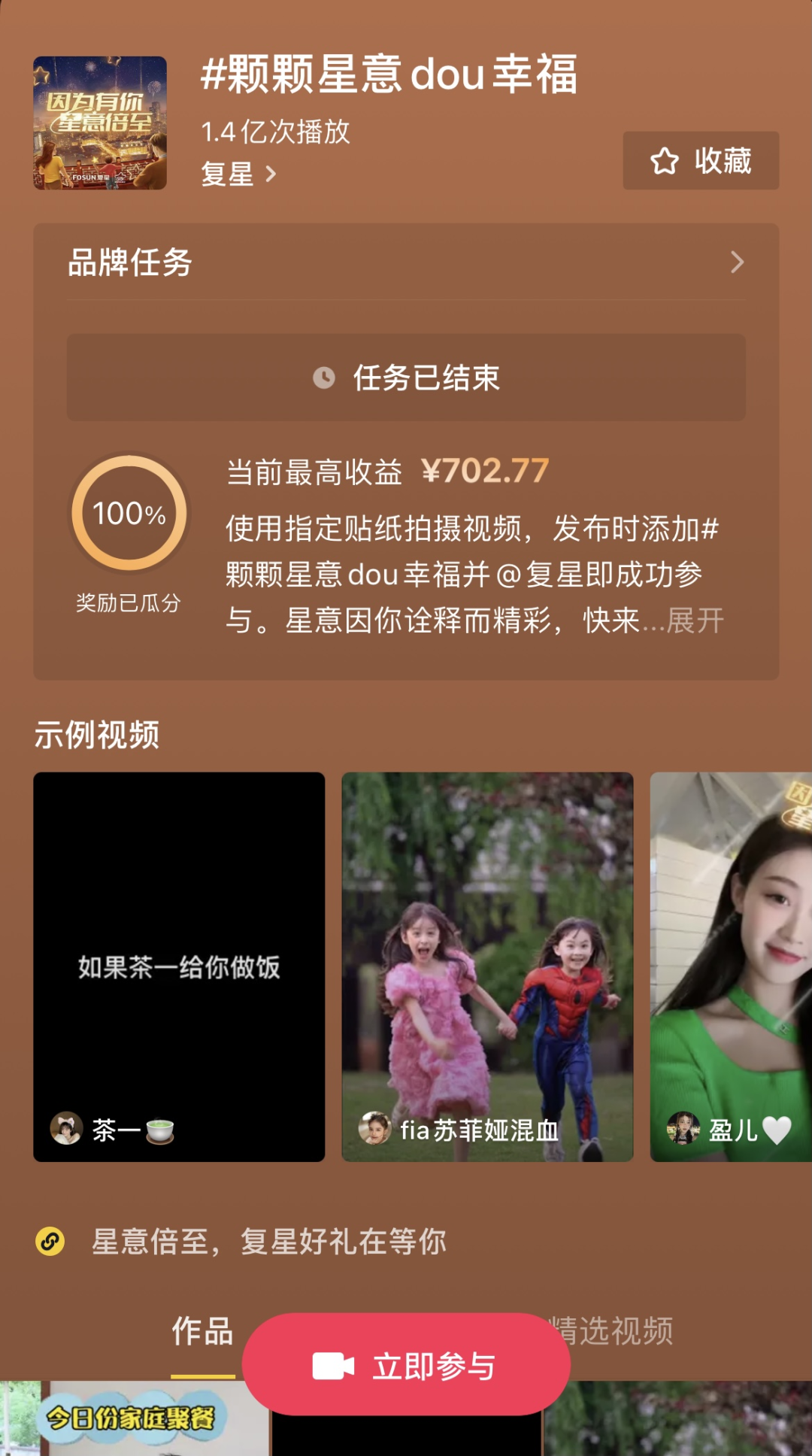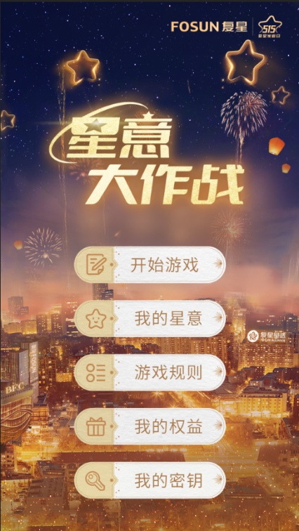今年515复鑫家庭日,复鑫特别发起“星意大作战”游戏互动。从5月1日起,用户登录复鑫星选小程序进入游戏,通过回答与心意表达相关的问题,生成专属“星意卡”,邀请好友互动、猜测心意首选便可获取“密钥”。5月15日“星意点亮仪式”当天,用户投入“密钥”,便有机会获得复鑫准备的好礼。同时,复鑫也在抖音平台发起“颗颗星意Dou幸福”挑战赛,用户按活动规则使用“星意倍至”贴纸发布视频,即可参与分享现金大奖。
