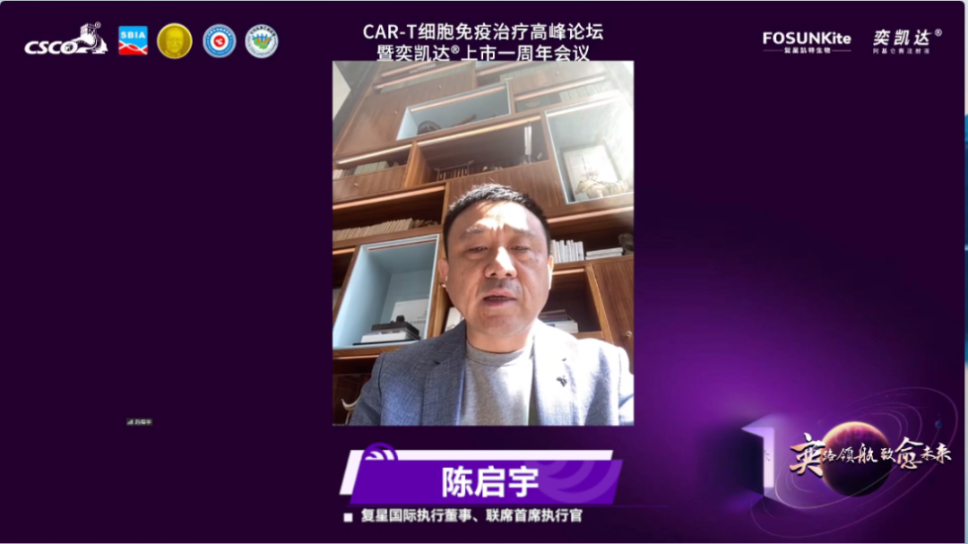 之后,复鑫国际执行董事、联席首席执行官陈启宇先生致辞,他表示:“阿基仑赛注射液的意义在于给我们中国患者带来了一个全球领先的产品和技术,其在中国的落地为整个细胞治疗技术在中国临床未来大规模的应用打开了一个窗口。”