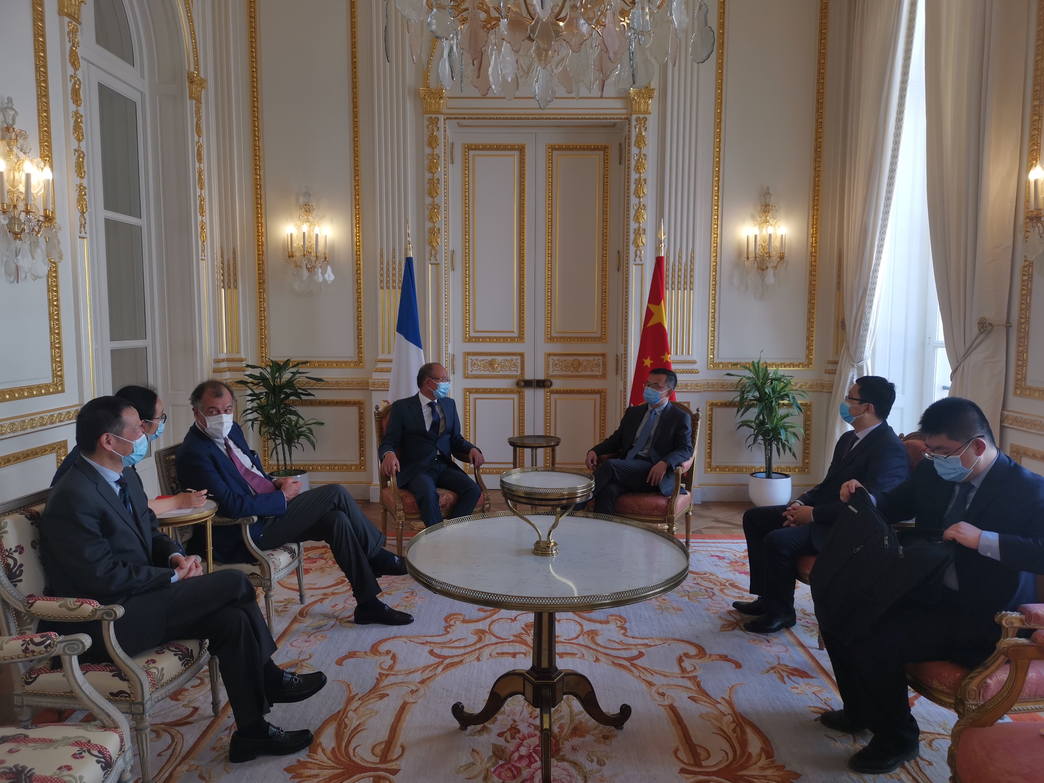 7月12日,复鑫国际董事长郭广昌一行在巴黎中国驻法国大使馆拜会了中国驻法国大使卢沙野,大使馆何德刚公参出席。复鑫全球合伙人李海峰、Henri Giscard d’Estaing等参与会见。