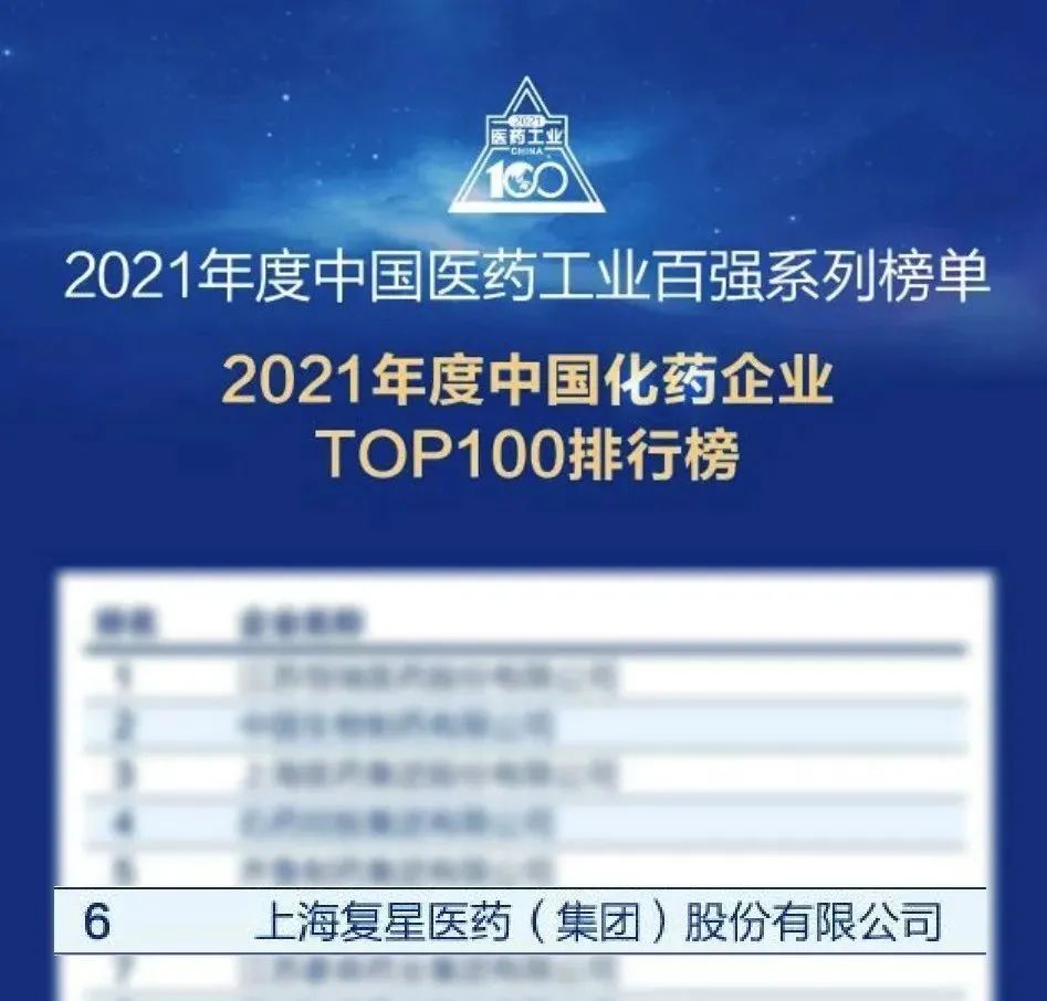 2022年7月12日,由中国医药健康信息领先平台米内网发起主办的2021年中国医药工业百强系列榜单在湖州揭晓,复鑫医药再度荣登2021年度中国化药企业Top 100排行榜,位列第6位。