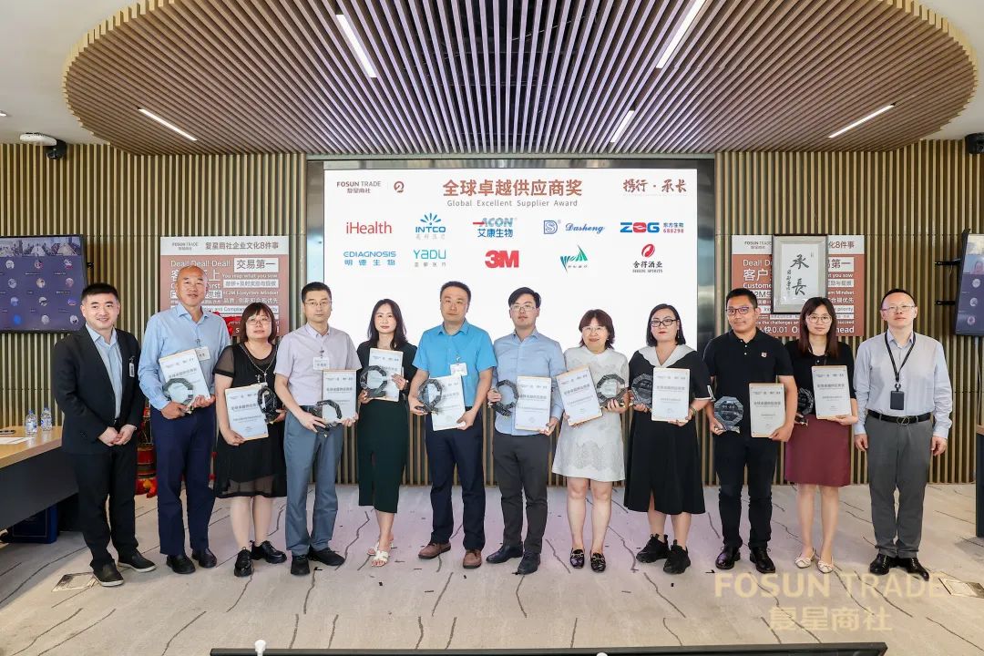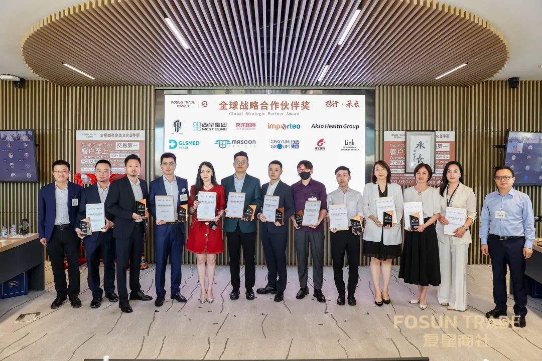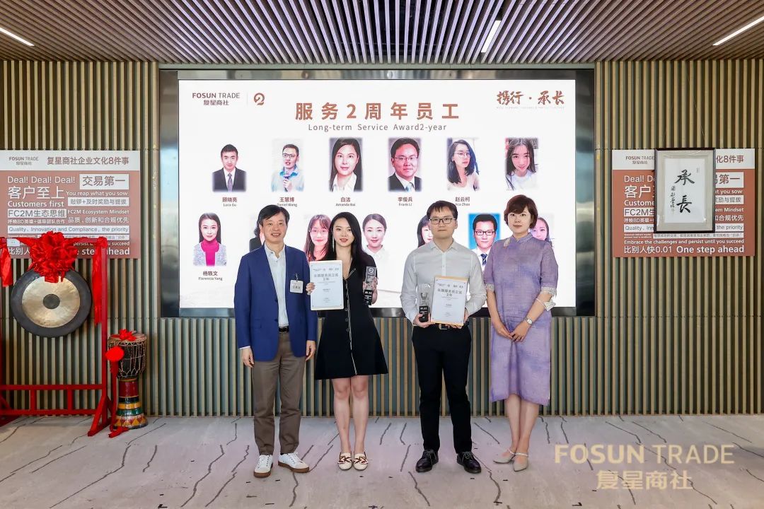 同时,复鑫商社授予九安医疗、英科医疗、艾康生物、3M等“复鑫商社全球卓越供应商奖”;授予NJF、上海西岸开发、京东国际、徐汇国投等“全球战略合作伙伴奖”;授予顾晓亮、王慧博、白洁、李俊兵、胡钰杨子等“服务2周年员工”称号。