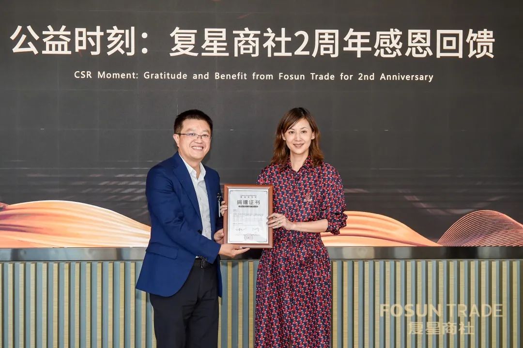 王津元接收捐赠并表达感谢,希望商社未来之路越走越宽广,与复鑫基金会共同发展。