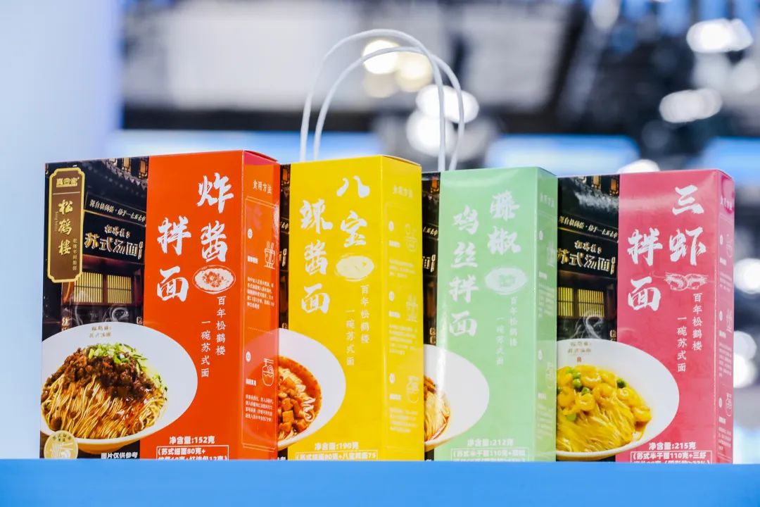 除了愈感之外,豫园文化饮食集团旗下创新品牌真尝家也在本届消博会上带来了其创新研发的老字号联名系列产品:松鹤楼焖肉面、大排面、爆鱼面,绿波廊、德兴菜馆、上海老饭店的海派、本帮风味预制菜等。