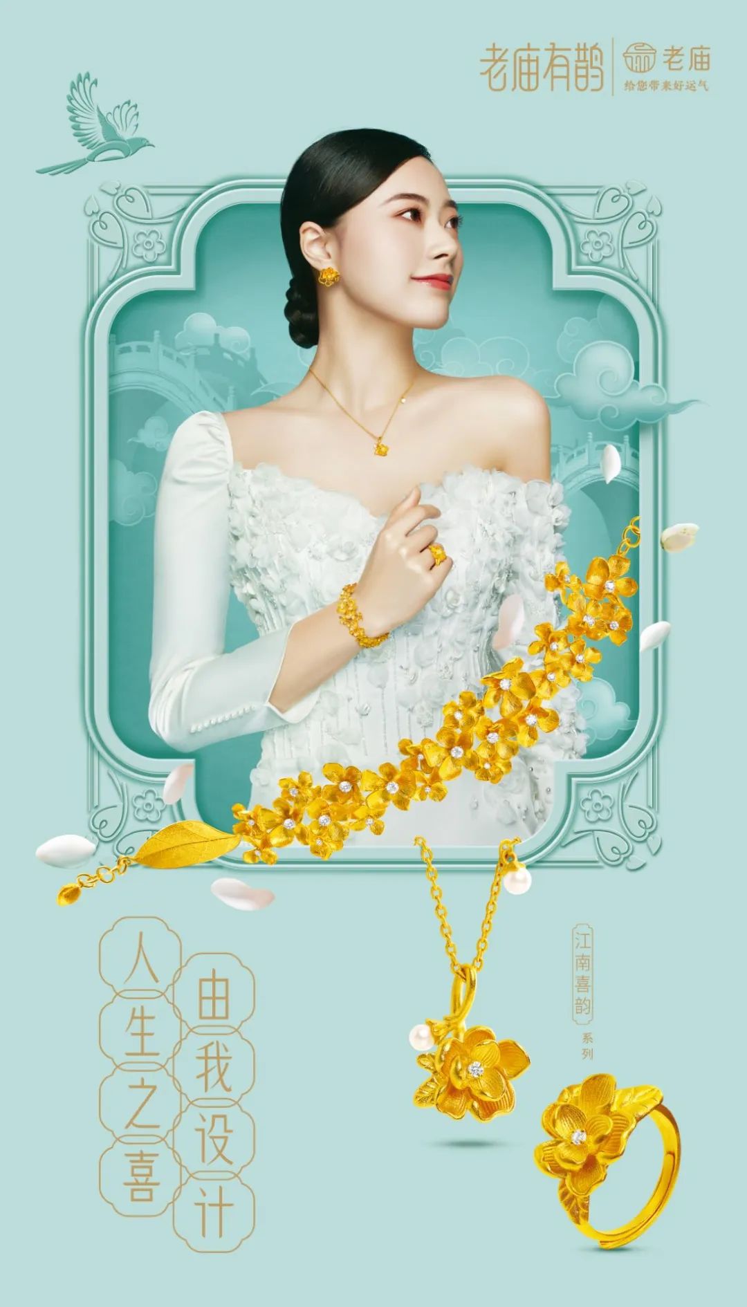事实上,正是由于对设计的尊重、对原创的推崇,使得近年来如老庙、亚一等豫园股份旗下的珠宝时尚品牌发展迅速。2021年,豫园珠宝时尚板块推出了老庙古韵金4.0鸿运升升系列,老庙多肉多福IP系列、亚一山茶蝶语系列等。从销售方面来看,老庙古韵金产品更是持续成为爆款,2021年销售额达到近40亿元。此前的战绩也让最新上市的老庙有鹊系列愈发受到业界期待。