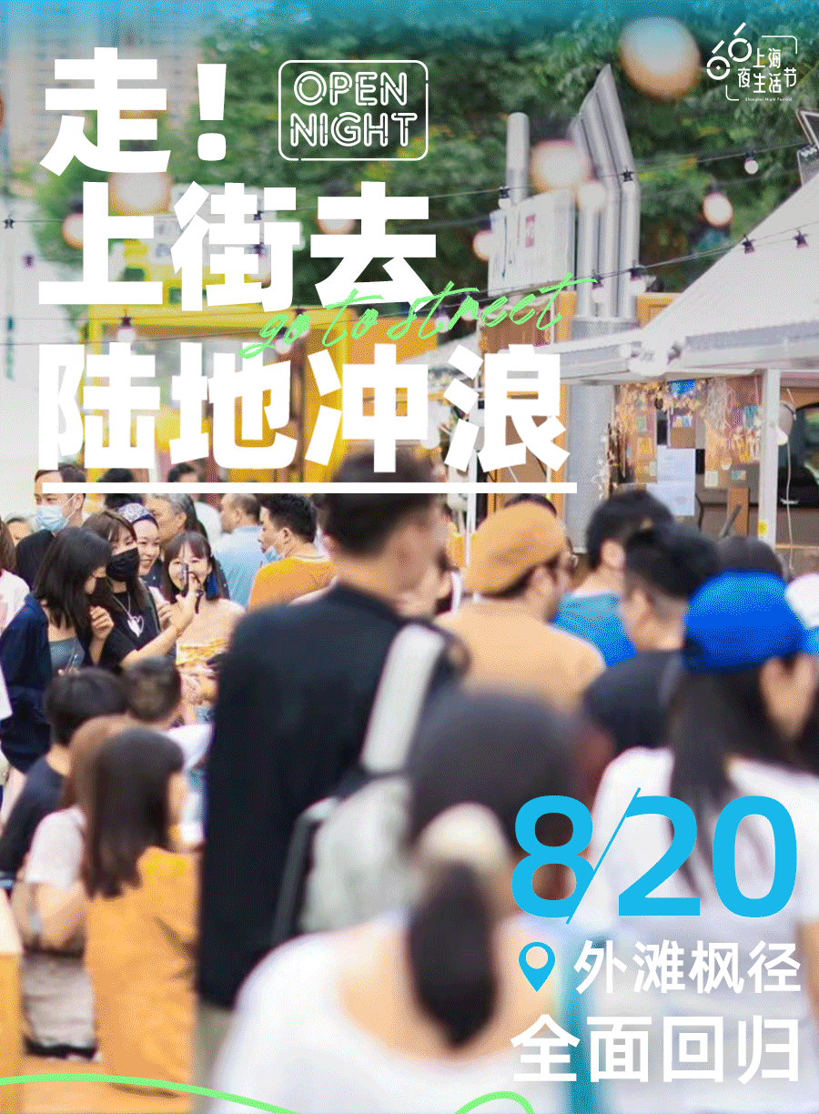 睽违数月,现在我们正式向你发出邀请,每个周末来外滩枫径!超110家品牌,文化艺术、美食美酒、活力运动、互动演出一起创意开“摆“,让你越逛越上瘾!开街首周,适逢上海夜生活节开幕特别活动―—OPEN NIGHT夜生活会客厅首秀,活动充分诠释”上海夜,思无界│OPEN THE NIGHT,OPENYoUR MIND”开放包容的精神。