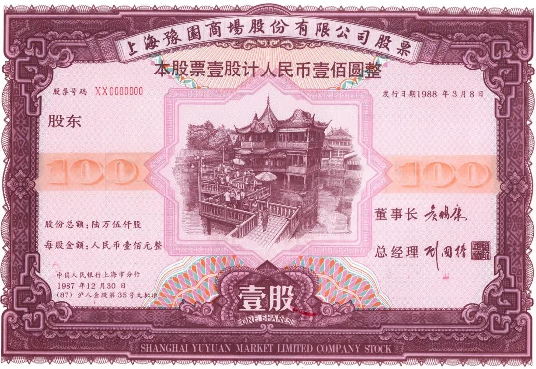 上世纪50年代,上海城隍庙一带的商店实行公私合营,“豫园商场”诞生;1987年11月25日,豫园商场批准成为上海商业系统第一家股份制企业,这也是豫园股份的前身;1990年12月19日,上海证券交易所开市集中交易,豫园股份是第一批上市的股票“老八股”之一。