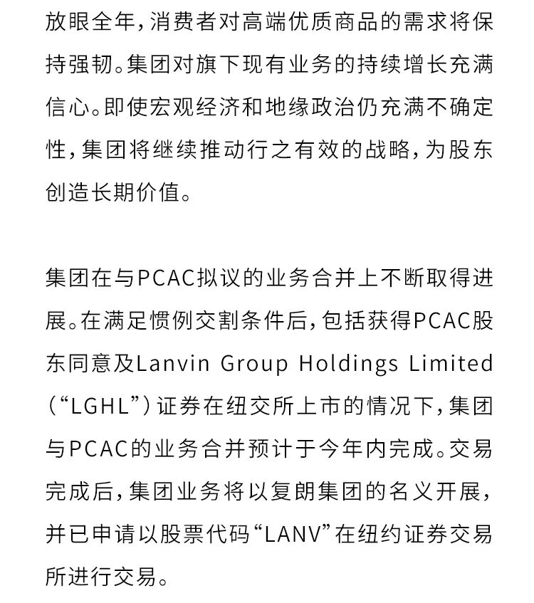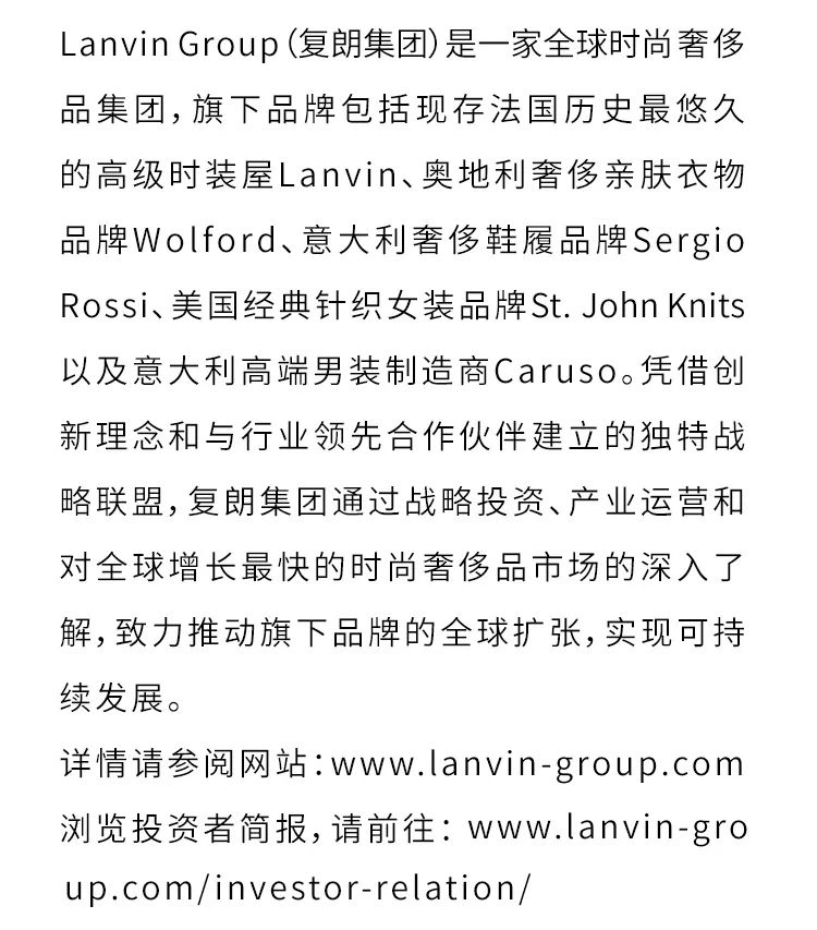 Lanvin Group(复朗集团)2022年上半年收入大幅增长73%至2.02亿欧元