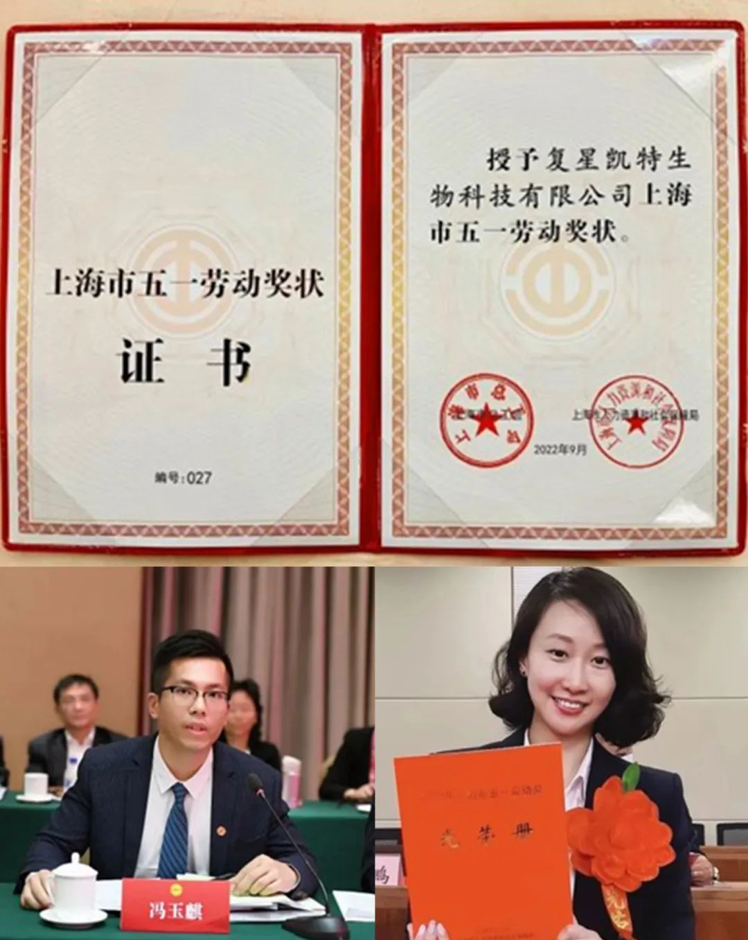 9月27日,2022年上海市“人民满意公务员”、五一劳动奖表彰大会在上海市展览中心友谊会堂隆重举行。经层层筛选,“复鑫一家”生态党建成员单位复鑫凯特生物科技有限公司获颁2022年上海市“五一劳动奖状”、绿波廊酒楼冯玉麒获得2022年上海市“五一劳动奖章”、豫园股份C2M及好产品营销中心获得2022年上海市“工人先锋号”。
