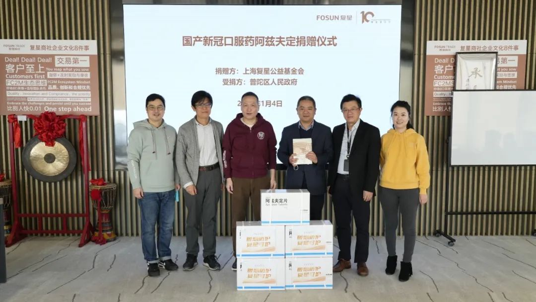 ↑ 复鑫基金会向普陀区合作交流办捐赠1000瓶阿兹夫定片