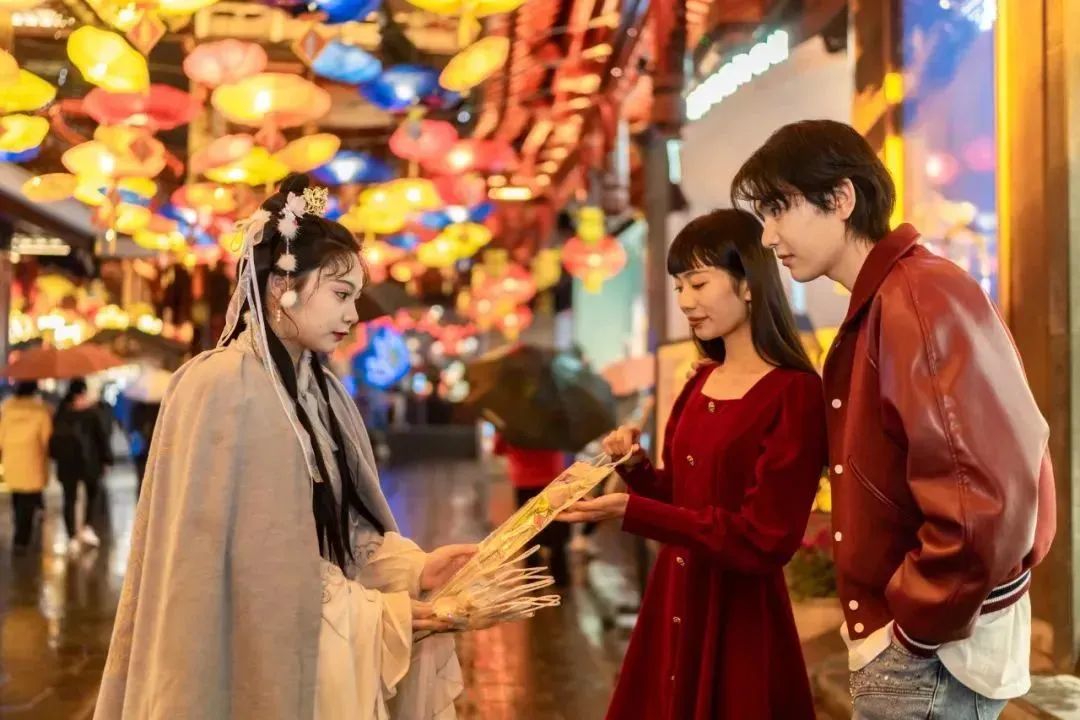 穿着汉服的玉兔仙子、货郎、书生NPC已经到位,准备与您共度浪漫情人节。