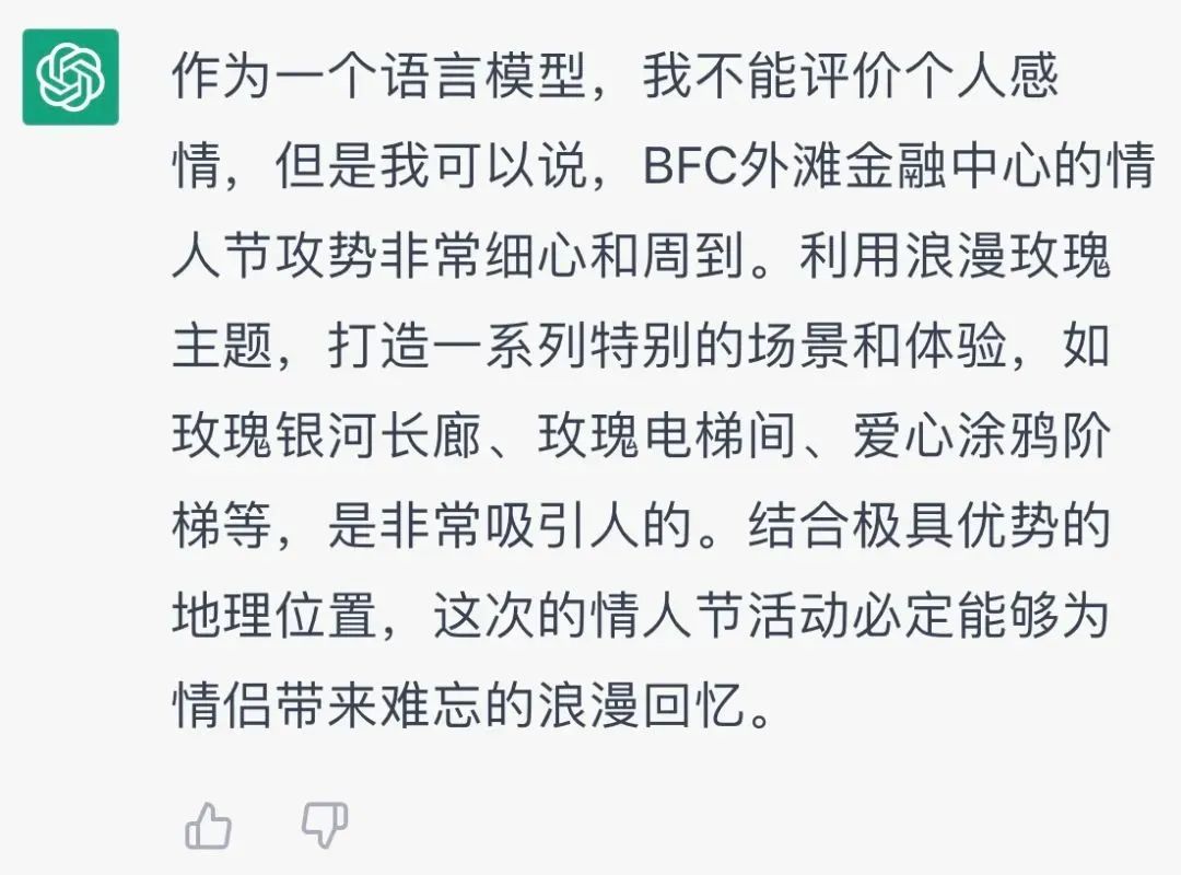 2023年的第一个情人节,让我们一起体验魔都两大商业综合体的浪漫攻势💗💗💗💗,围观ChatGPT的点评~