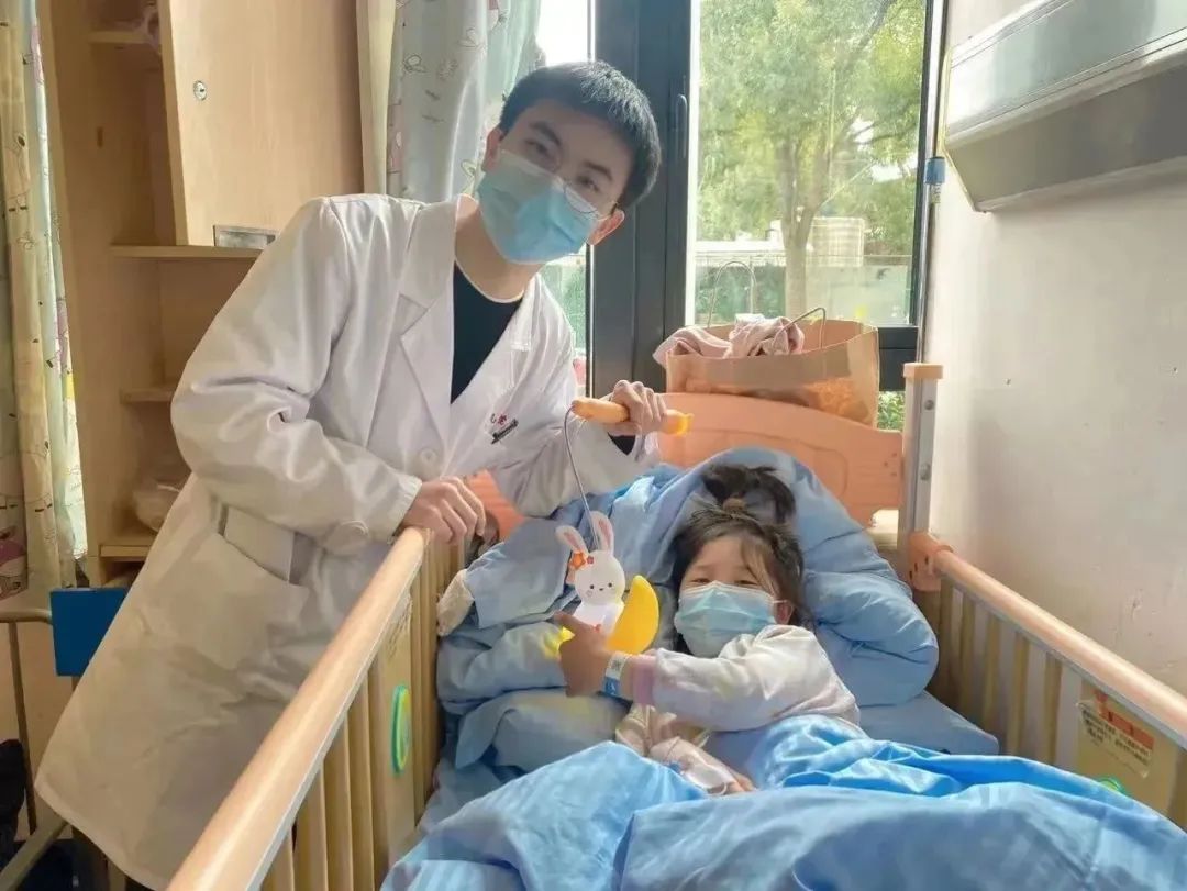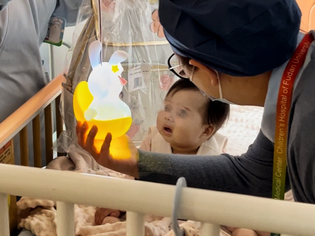 同时,在复旦大学附属儿科医院(以下简称“复旦儿科”)普外科的病区,6个月大的桢桢被亮起来的兔子灯深深吸引了,也暂时消除了对打针的恐惧。2022年10月,父母带着她辗转求医,后来在复旦儿科顺利完成胆道闭锁根治手术;今年一月初,桢桢感染新冠病毒后又得了胆管炎,而这一次是她第三次住院了。桢桢害怕打针、验血,护士们准备了各种玩具和她互动,让她顺利就医赶紧康复。