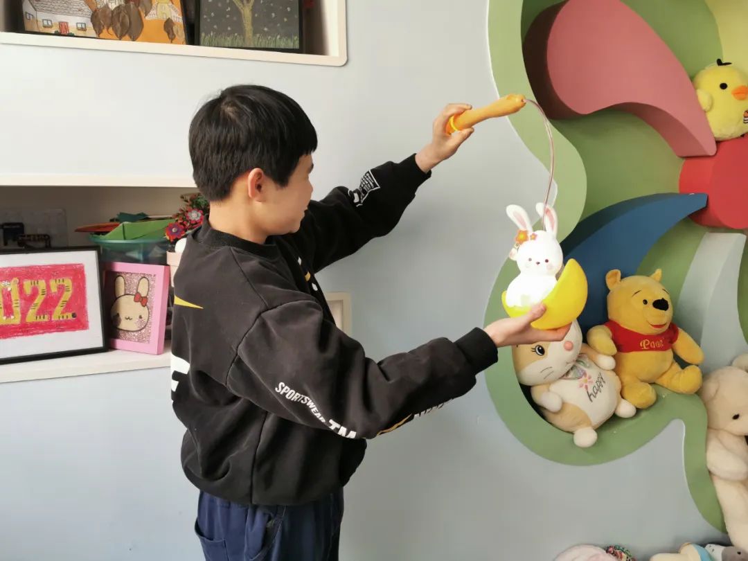 ▲ 上海市临时儿童看护中心的孩子与兔子灯互动