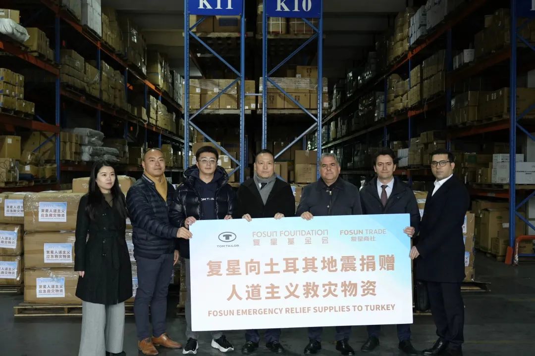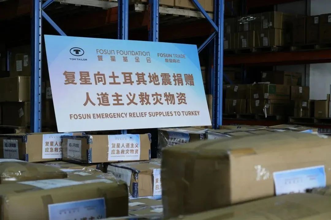 ▲复鑫基金会联合豫园股份生态企业Tom Tailor及复鑫商社向土耳其灾区捐赠救灾物资