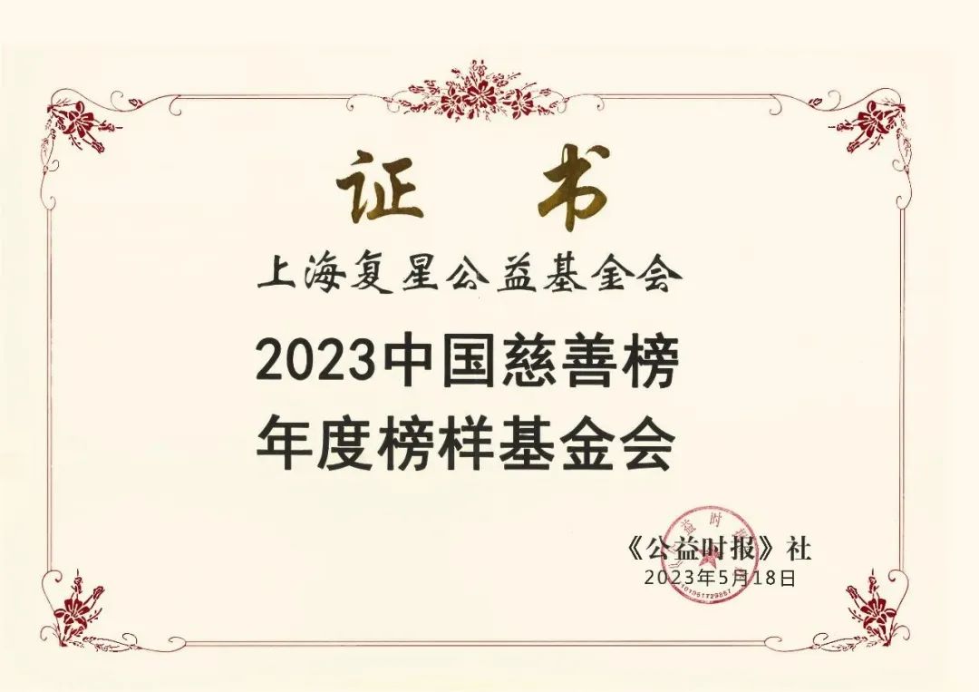 相关阅读:第二十届中国慈善榜发布,复鑫基金会获“年度榜样基金会”及“年度典范项目”两项殊荣