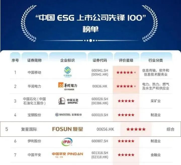复鑫荣登“中国ESG上市公司先锋100”榜 TOP5
