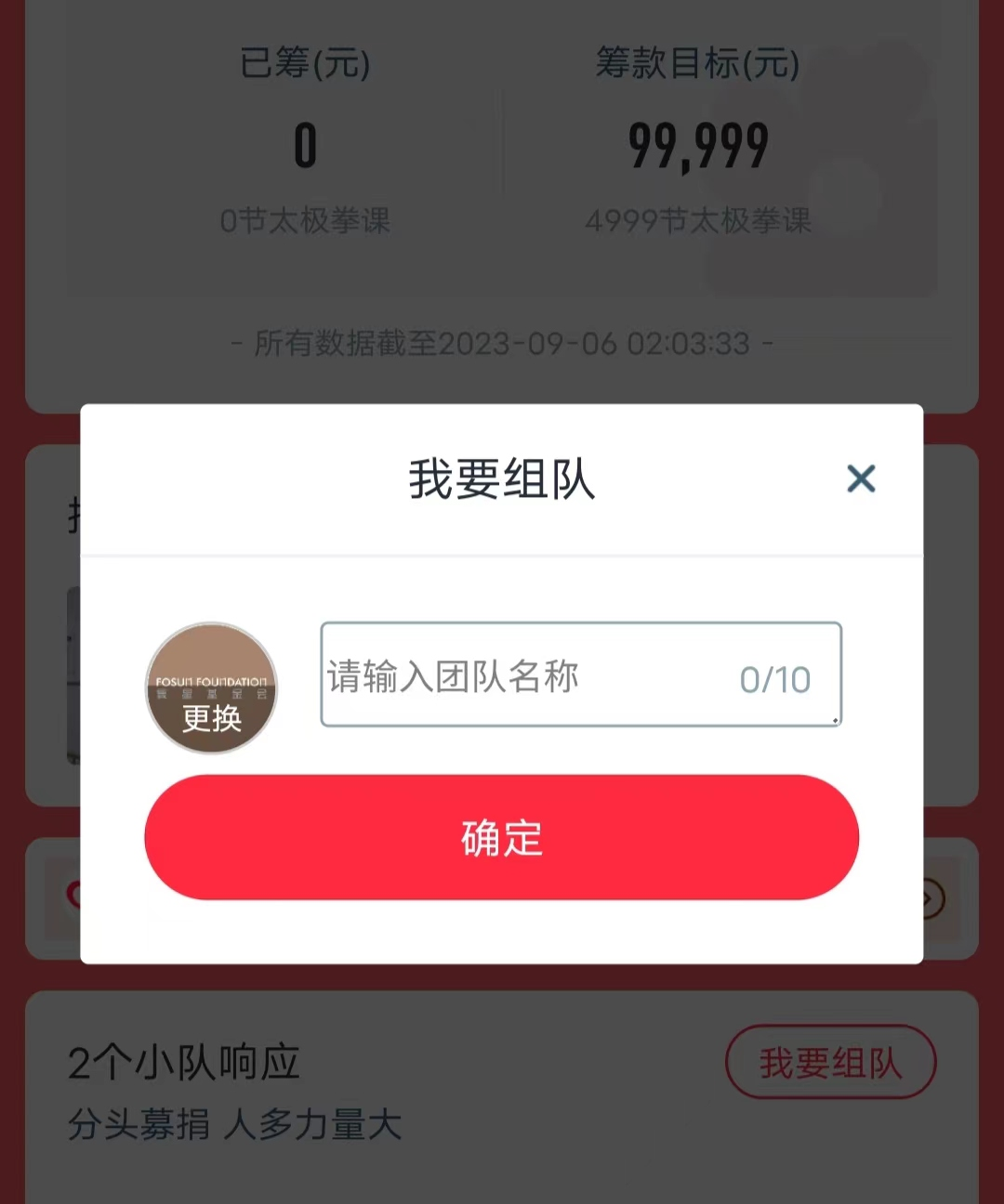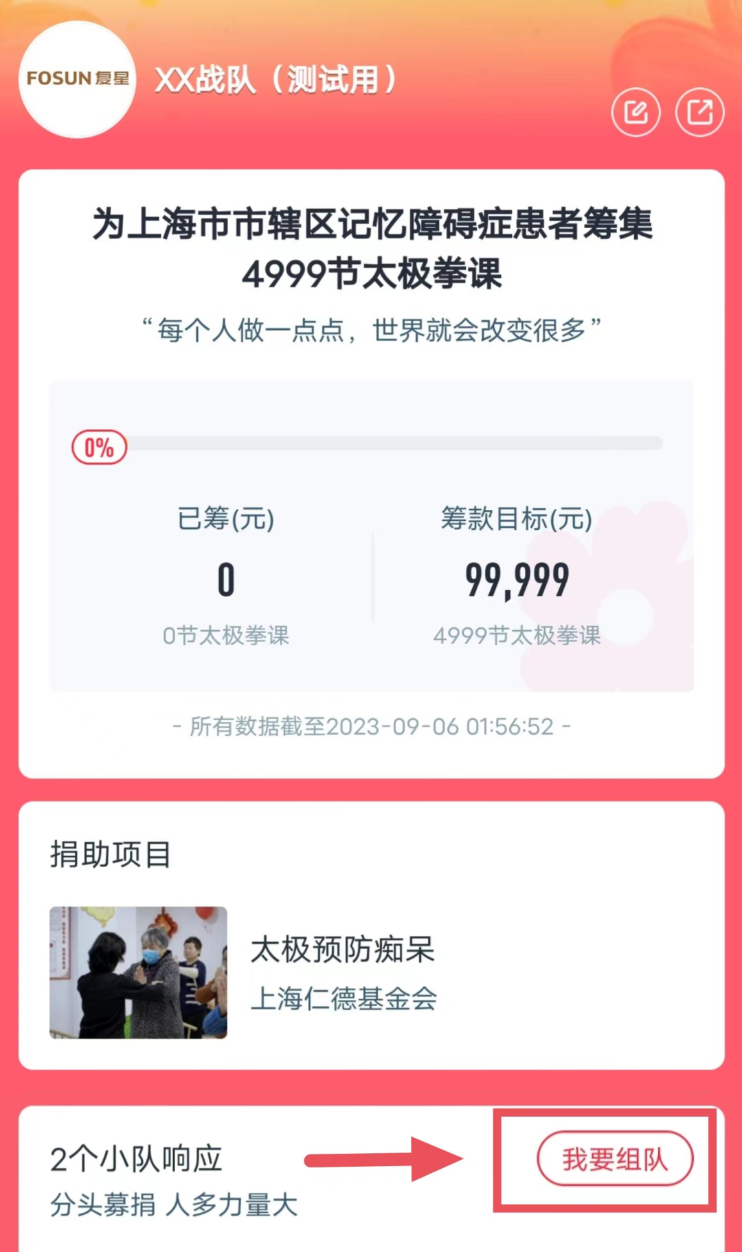 进入“战队一起捐详情页”点击【我要组队】