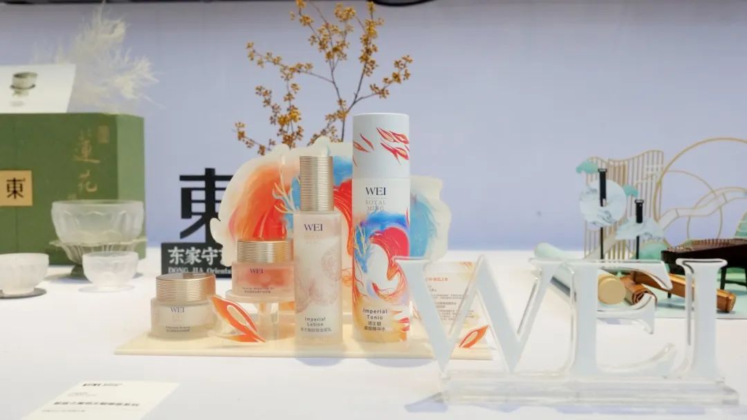 上海表的复兴·丹青系列千里江山款以顾绣“融画理入绣”为设计灵感,将画作融于表盘之上;海鸥表的大汉雄风·骠骑将军系列从中国历史中取材,将“中国精神”贯穿始终;东家手艺人与苏州博物馆携手推出的秘瓷莲花盏礼盒,灵感来源于苏州博物馆镇馆之宝五代越窑“秘色莲花碗;化妆品品牌WEI蔚蓝之美推出的明王朝御容系列新品,灵感来源于景德镇中国陶瓷博物馆馆藏文物“明万历青花龙凤纹盖盒”。