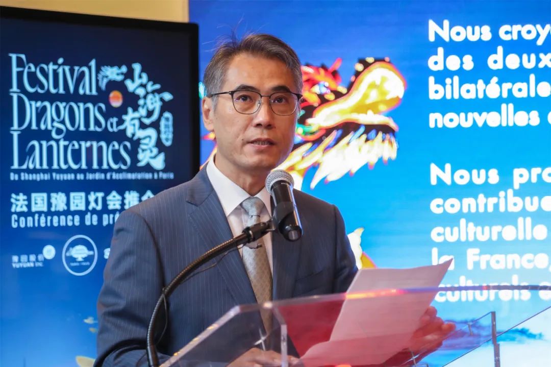 △巴黎风情园园长、路威酩轩集团秘书长Marc-Antoine Jamet严振全在致辞中表示,上海豫园灯会首次出海、来到美丽的巴黎,将充分展现东方美学文化、上海国际文化大都市风貌和中华传统文化的民族自信,传递对中法两国关系最为诚挚美好的祝福。相信法国豫园灯会一定能讲好豫园故事,讲好上海故事,为包括法国在内的全世界人民讲好中国故事。