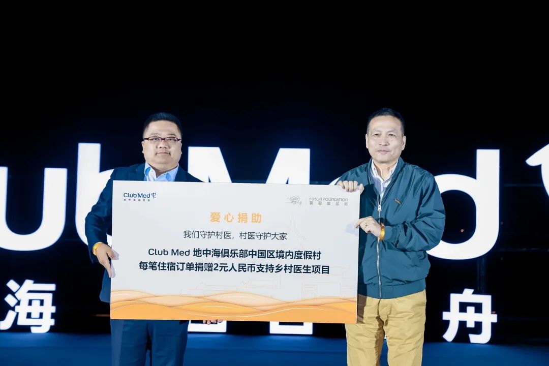 开业仪式上,Club Med地中海俱乐部宣布将支持中国基层农村,守护村医,助力乡村振兴。即日起,Club Med中国境内度假村每发生一笔住宿订单,都将捐赠2元人民币支持由复鑫基金会联合中国人口福利基金会共同发起的健康暖心乡村医生项目。上海复鑫公益基金会理事长李海峰代表乡村医生项目接受捐赠。