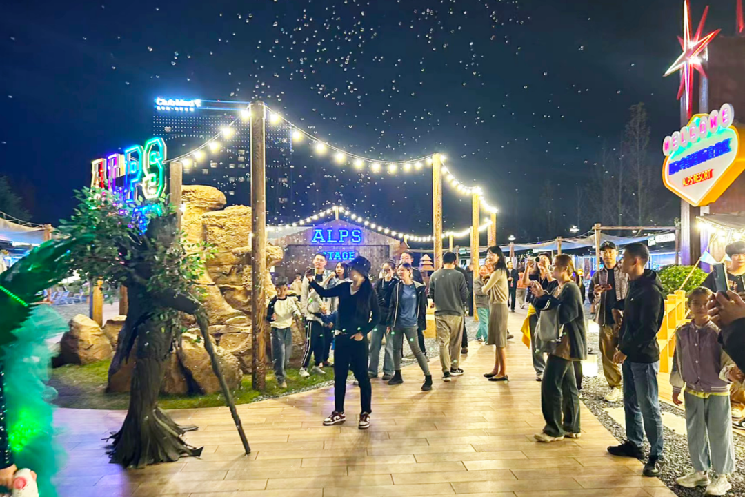 开幕盛典中,“赛菲尔德民俗欢迎秀”“巴塞尔怪咖巡游方阵”“安纳西空中艺术秀”等一系列原汁原味的阿尔卑斯风情表演在阿尔卑斯时光境与阿尔卑斯营地上演。该两大主题体验区,高度还原阿尔卑斯建筑、村庄、森林、河流等人文及自然景观,聚合主题娱乐、美食娱乐、派对时尚、商务休闲等多元消费场景,包含多家异国风情餐厅、一线滑雪装备品牌专卖店、大型艺术创意展等。