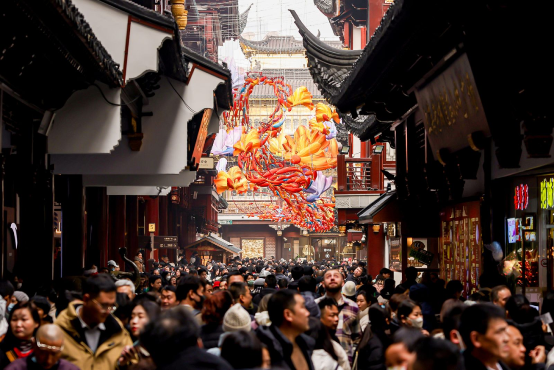 今年的豫园灯会刚刚上线了两款国风手提龙灯,三款新春龙帽。其中,“金豫龙瑞瑞”以中华第一玉龙“C”型龙“汉玉龙”为造型,目前几乎“一灯难求”。豫园商城的多家老字号餐厅也陆续推出了“龙”形菜品和点心,为消费者的新年餐桌增添别样风味。南翔馒头店和绿波廊的火爆带动豫园商圈元旦整体销售创新高。