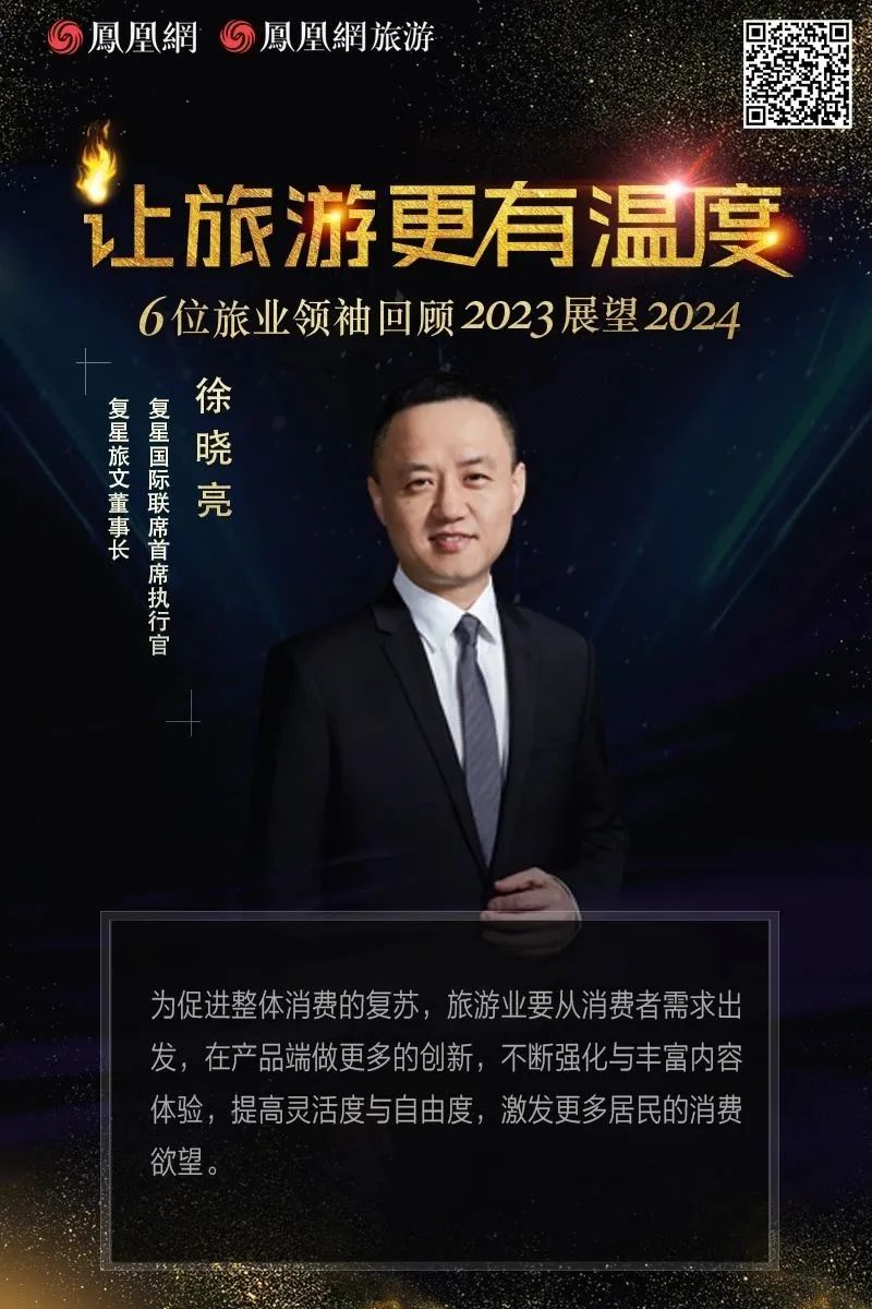 在旅游行业的棋盘上,2023年的落子已成历史,2024年崭新的布局正徐徐铺开。近日,复鑫国际联席首席执行官、复鑫旅文董事长徐晓亮等6位旅游行业领袖接受凤凰网旅游专访,复盘2023,展望2024,为新一年旅游行业的发展提供启示。